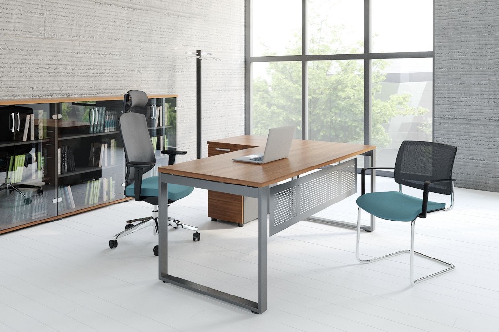 Colectia de birouri operationale Ogi Q ofera un spatiu deschis si va permite sa realizati compozitii de culoare si texturi interesante de la blatul de lucru: MFC, la material textil la panourile despartitoare si metal, la structura biroului.