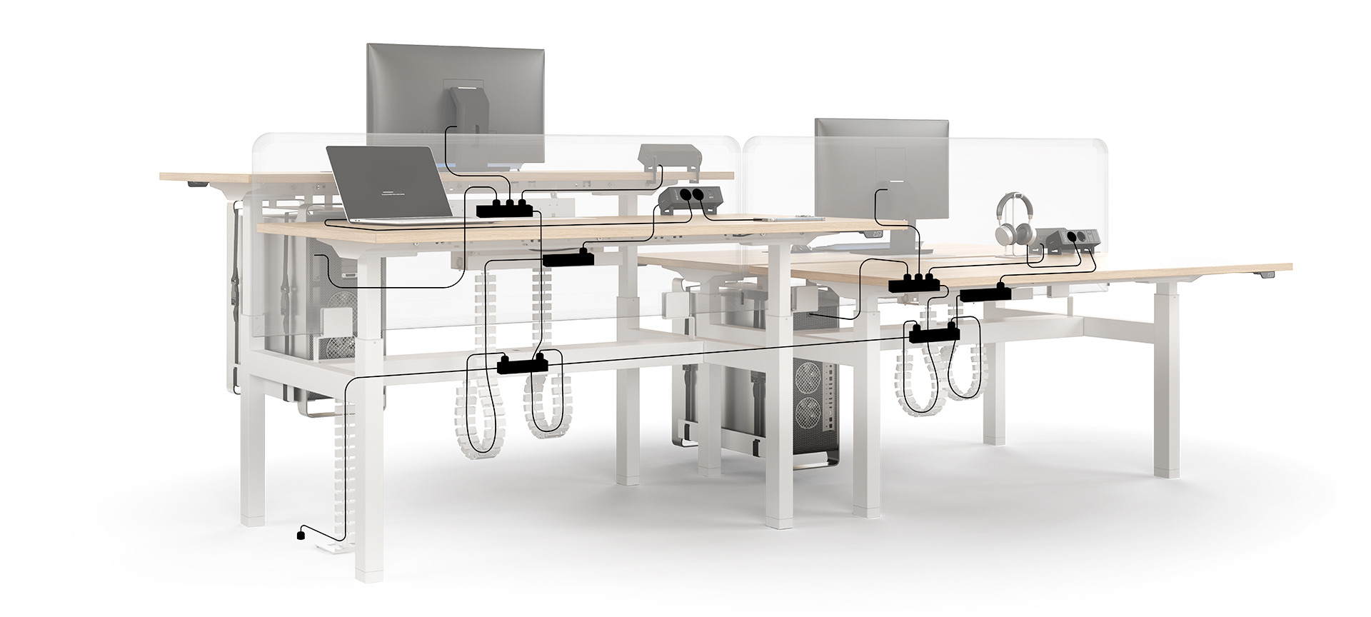 Birourile B-ACTIVE sunt perfecte pentru a crea atât spații de lucru individuale, cât și pentru colaborare. Caracteristicile structurale ale biroului vă permit să plasați convenabil două birouri unul lângă altul. Biroul B-ACTIVE este dimensionat optim și, astfel, vă permite să vă utilizați eficient spațiul de lucru amenajând mai multe birouri. Un spațiu de lucru colaborativ oferă angajaților o modalitate sigură de a interacționa și, în același timp, le permite să își ajusteze și să-și adapteze birourile la nevoile lor individuale.