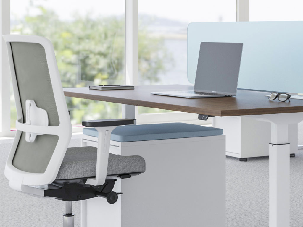 Puteți rămâne confortabil chiar dacă petreceți ore lungi la birou. Cu B-ACTIVE, vă puteți menține cu ușurință activ fizic la locul de muncă și vă puteți schimba poziția de lucru din șezut la în picioare sau invers. Acest lucru nu numai că vă susține bunăstarea fizică, dar vă crește și productivitatea.