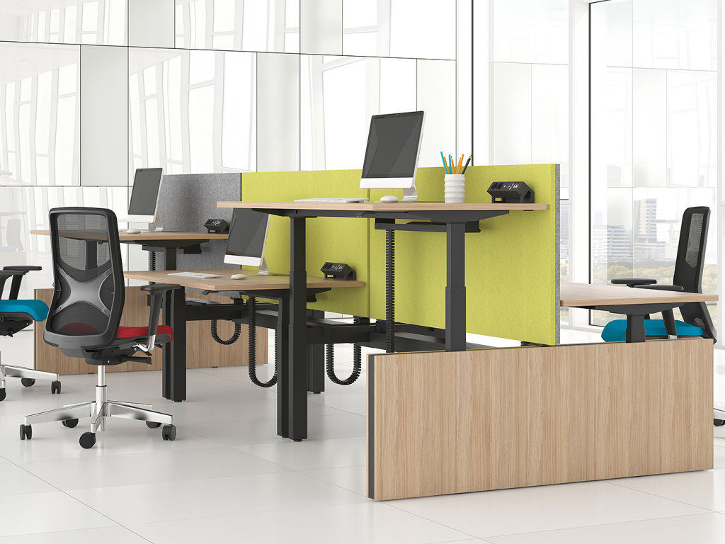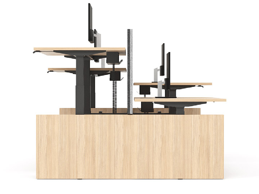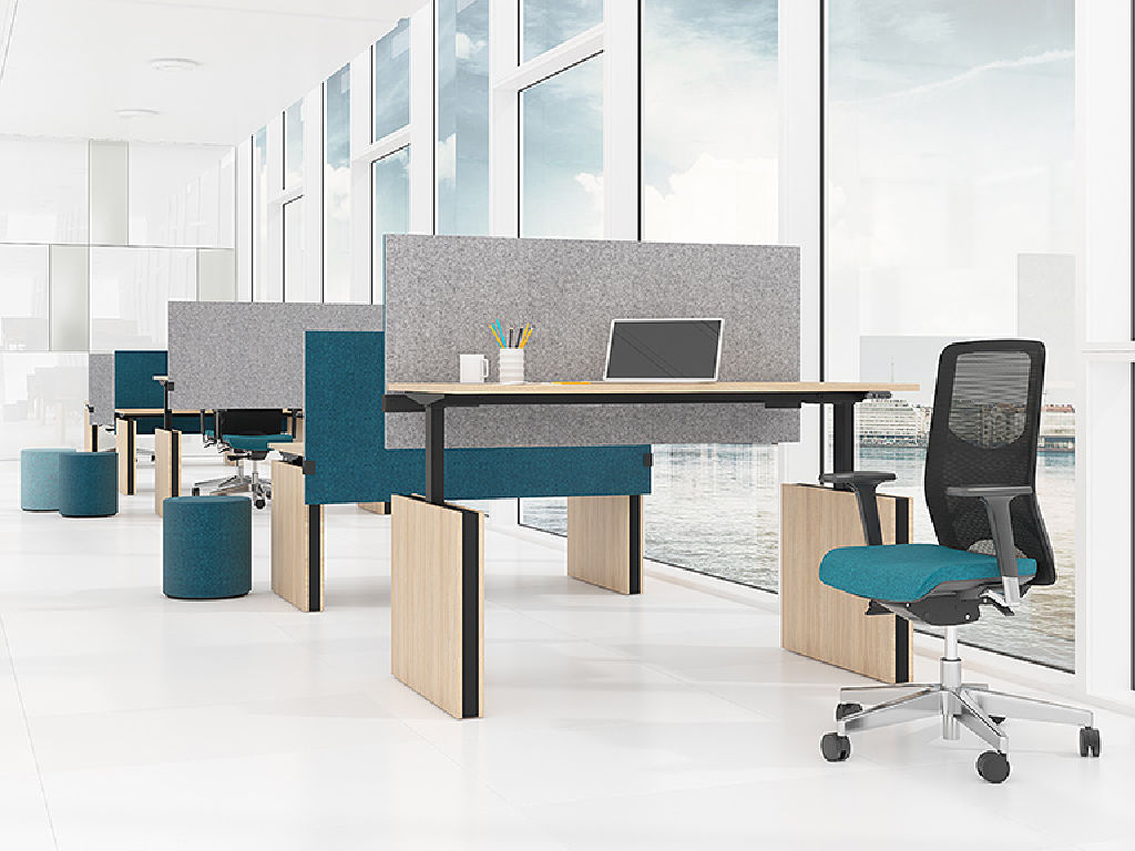 Un sistem de birou reglabil electric pe înălțime, conceput pentru un stil de lucru dinamic. O schimbare regulată a posturii vă îmbunătățește starea de bine și concentrarea, în timp ce un spațiu de lucru ergonomic și bine organizat evocă emoții pozitive. Sistemul este disponibil sub formă de birouri individuale sau birouri stație de lucru concepute pentru o aranjare flexibilă a posturilor de lucru, precum și pentru lucru individual sau în grup.