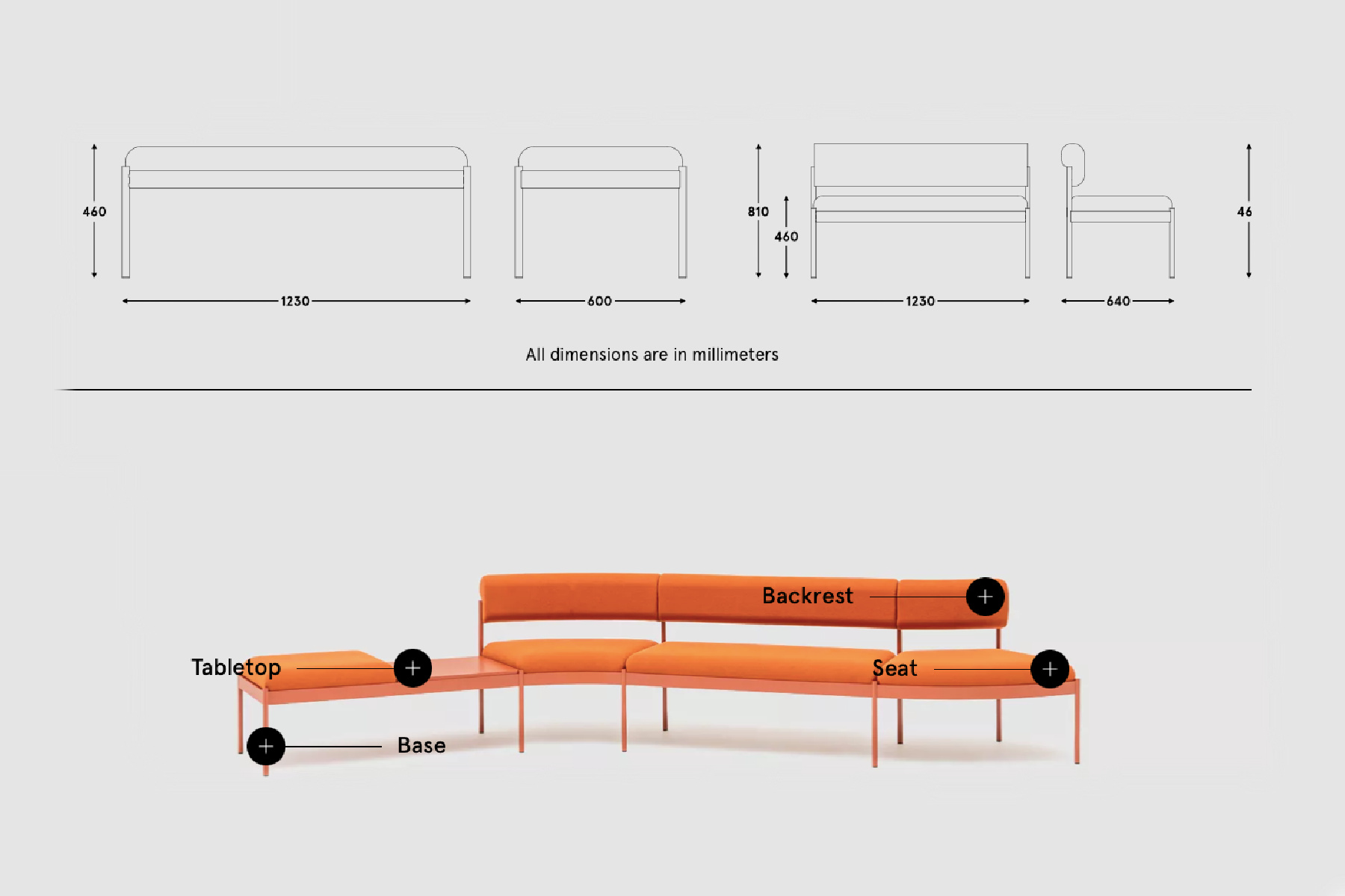 Canapeaua modulară Nora oferă flexibilitate în amenajarea spațiilor publice. Cu opțiunea de a alege dintre configurațiile predefinite sau de a utiliza modulele pentru a crea unele unice, utilizatorul poate ajusta cu ușurință Nora pentru a se potrivi nevoilor sale sau caracterului spațiului.