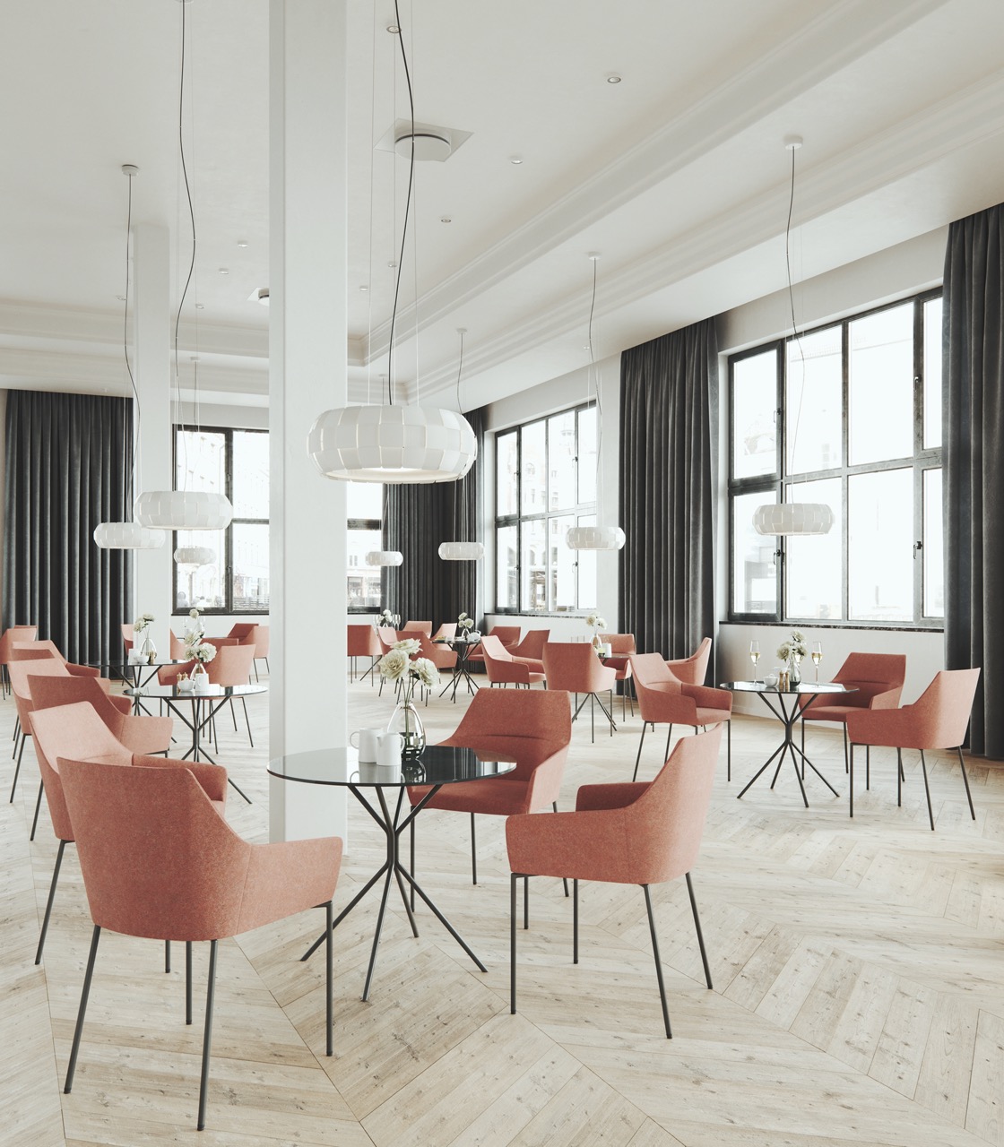 Conceput pentru zone comune, cafenele, restaurante, zone de așteptare, recepții sau lobby-uri de hotel și alte interioare publice.