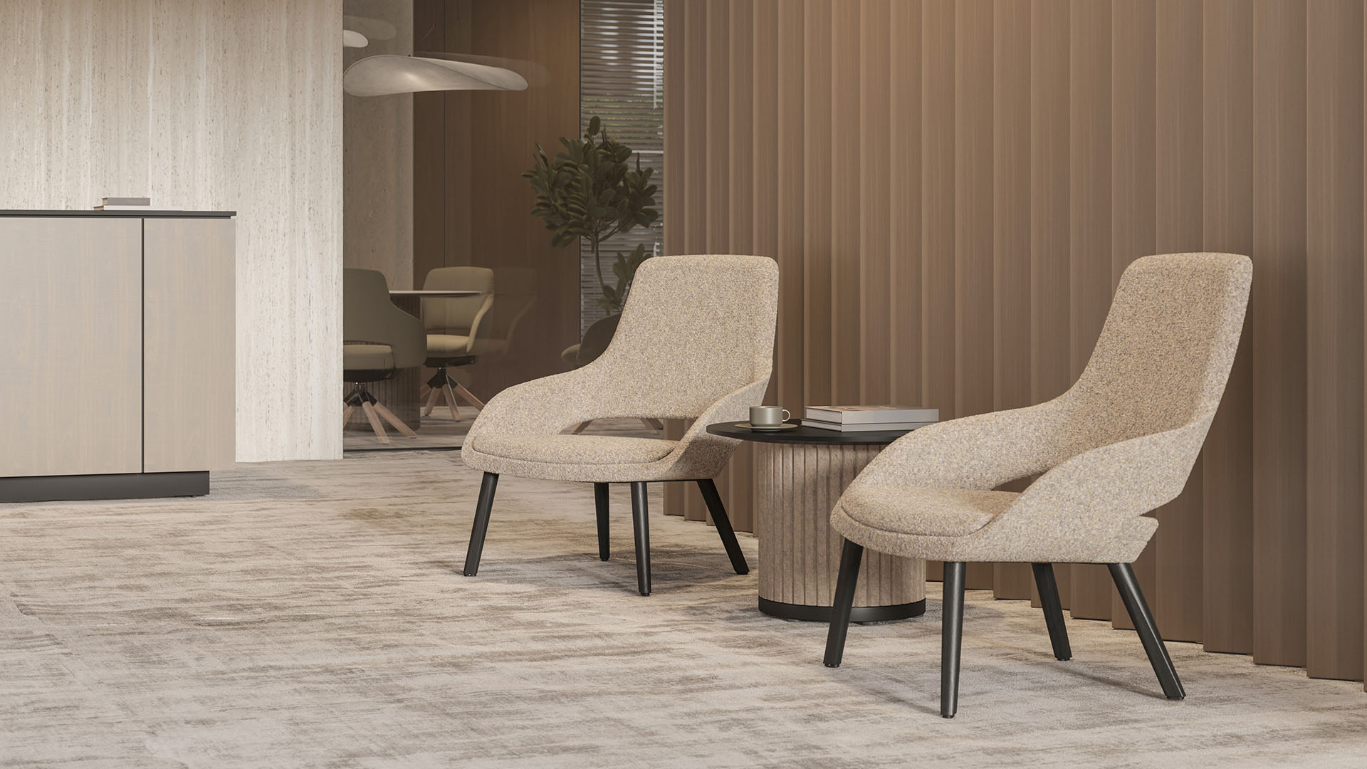 Pe măsură ce modelul de lucru hibrid devine tot mai popular, birourile moderne caută mobilier care nu este doar funcțional, ci contribuie și la crearea unei atmosfere plăcute. Scaunele și piesele de lounge care oferă atât relaxare, cât și productivitate, asigură confortul în diverse zone ale biroului. În răspuns la aceste tendințe, am dezvoltat un nou produs exclusiv împreună cu partenerii noștri de lungă durată, studioul de design Baldanzi & Novelli Designers. Cea mai recentă creație a lor este inspirată de mediile de lucru dinamice, în care angajații petrec tot mai mult timp nu doar la birou, ci și în săli de întâlnire sau zone de relaxare.