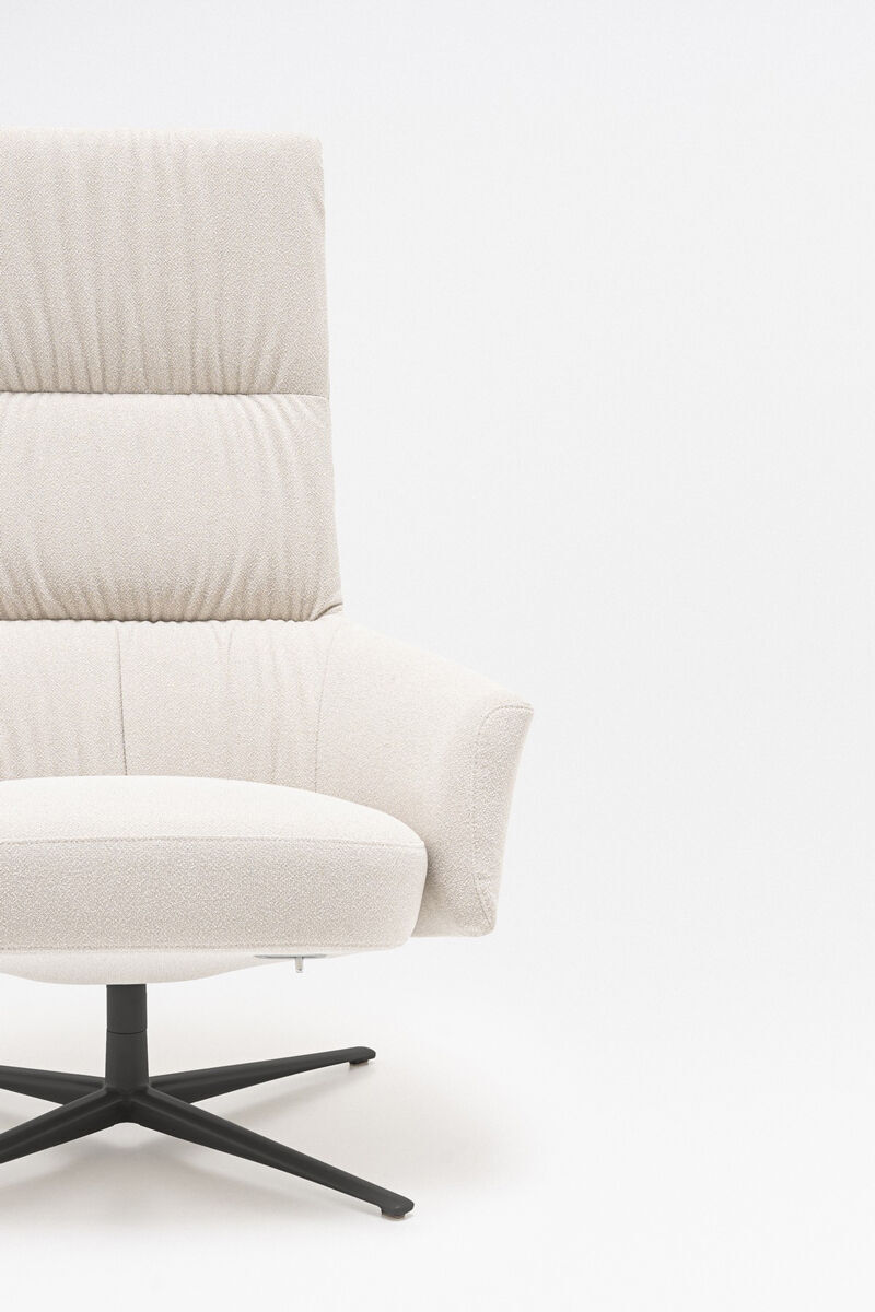 Datorită mecanismului de înclinare a spătarului, fotoliul se adaptează cu ușurință la poziția dorită, iar șezutul generos și confortabil permite adoptarea oricărei posturi în timpul relaxării. Designul larg și brațele integrate oferă atât suport, cât și delimitarea spațiului personal.