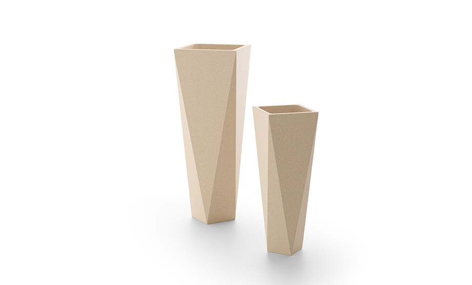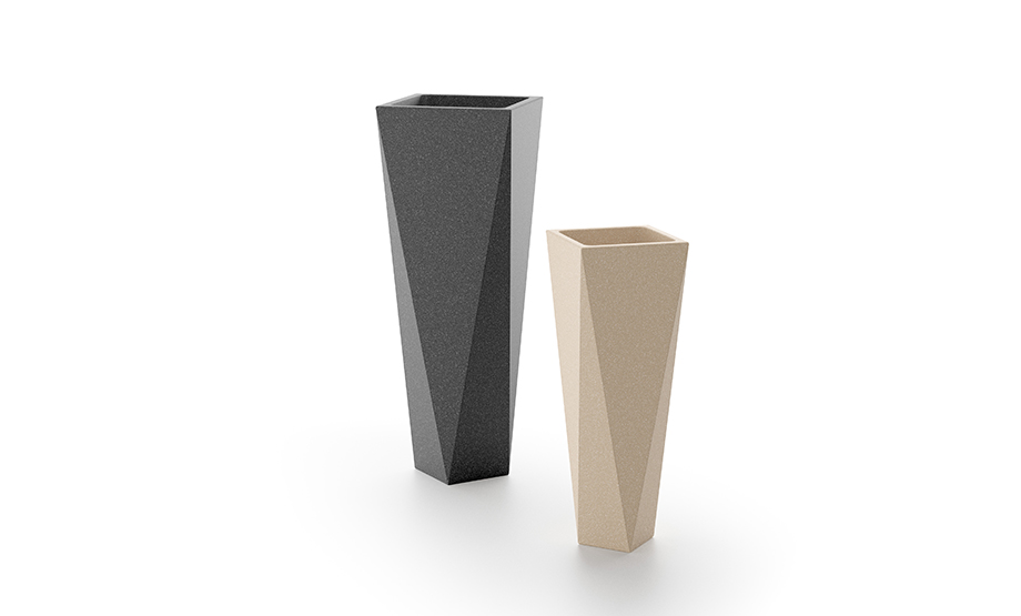 Disponibil în două dimensiuni – 72 cm și 98 cm – și culori sofisticate (alb, gri granit și crem-stone), Diamond este ideal pentru plante de dimensiuni mici și medii, fie în interior, fie în exterior.