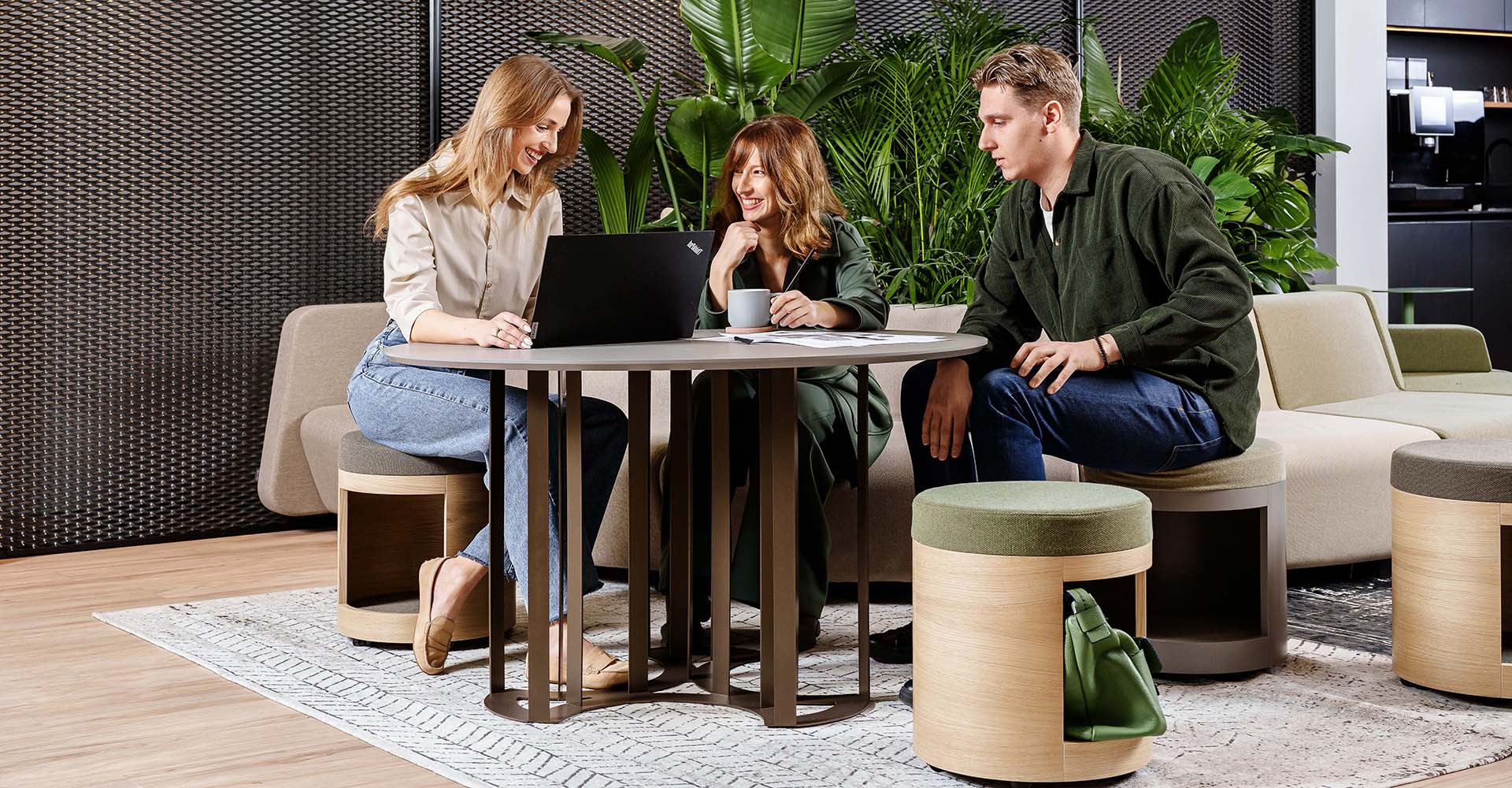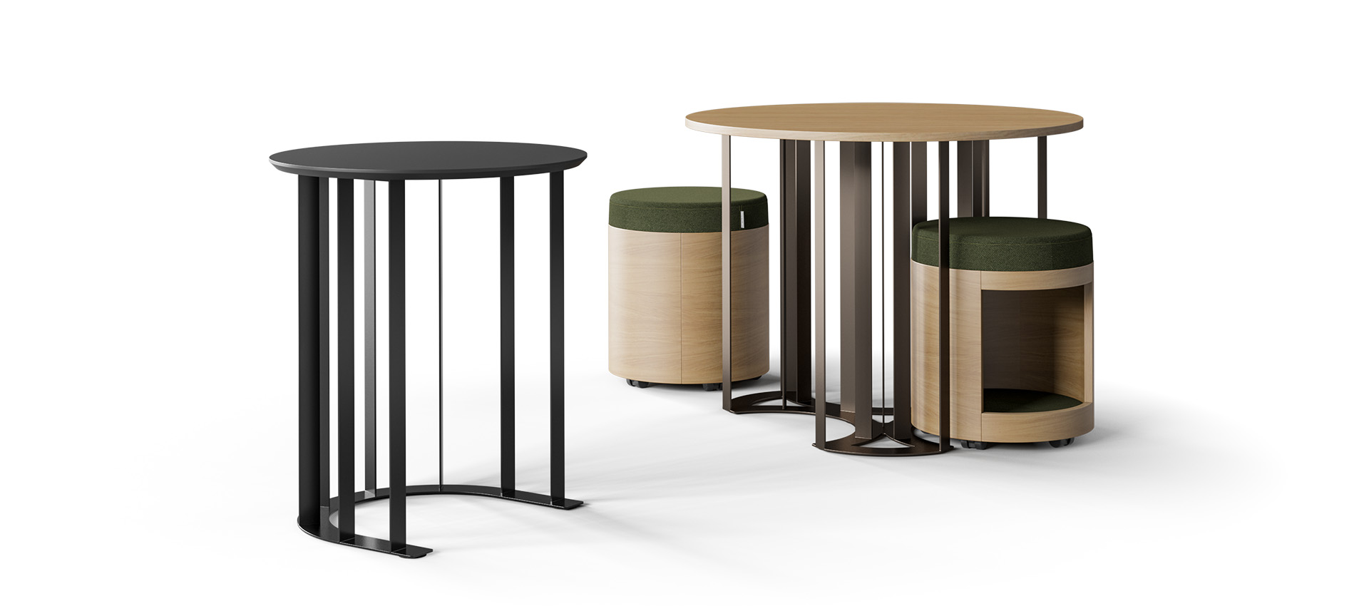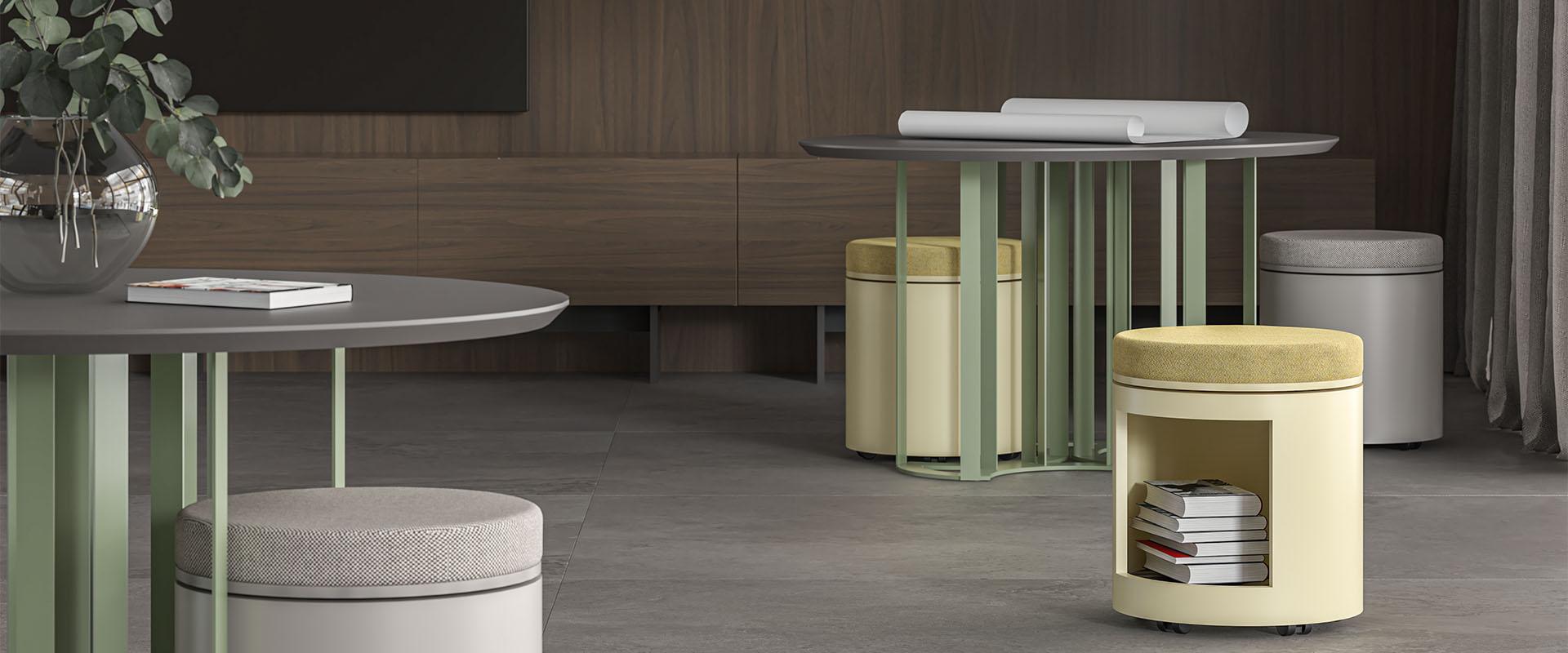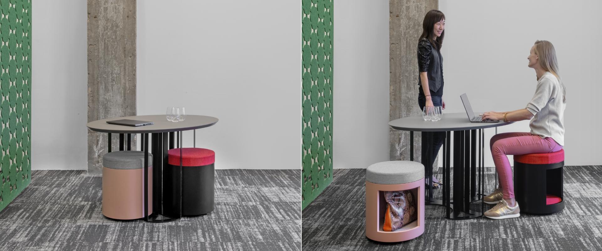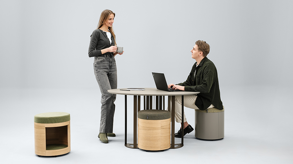 Disponibilă cu opțiuni de poufuri integrate, care se pot depozita ușor dedesubt, masa ZooZoo este gândită pentru a optimiza spațiul și a încuraja interacțiunea. O alegere excelentă pentru companiile care apreciază estetica, confortul și eficiența în amenajarea birourilor.