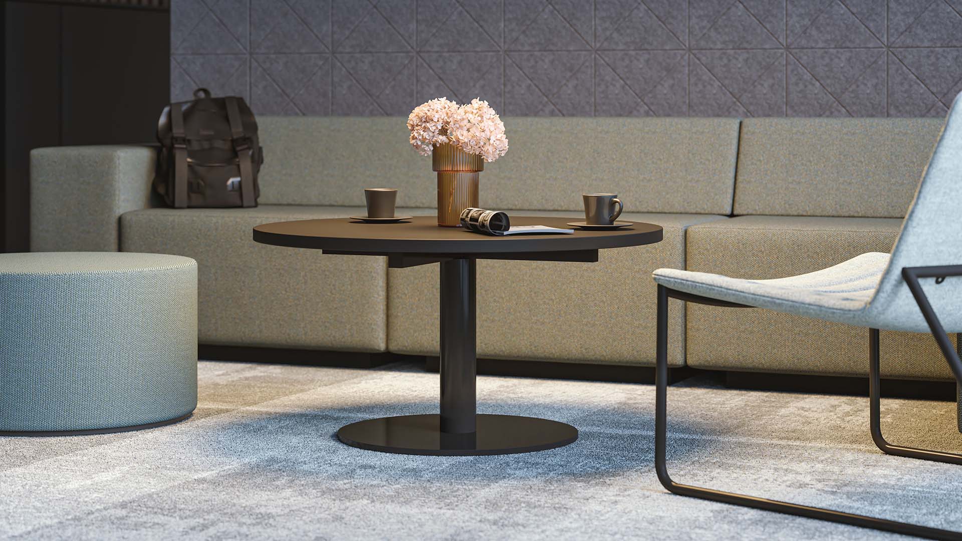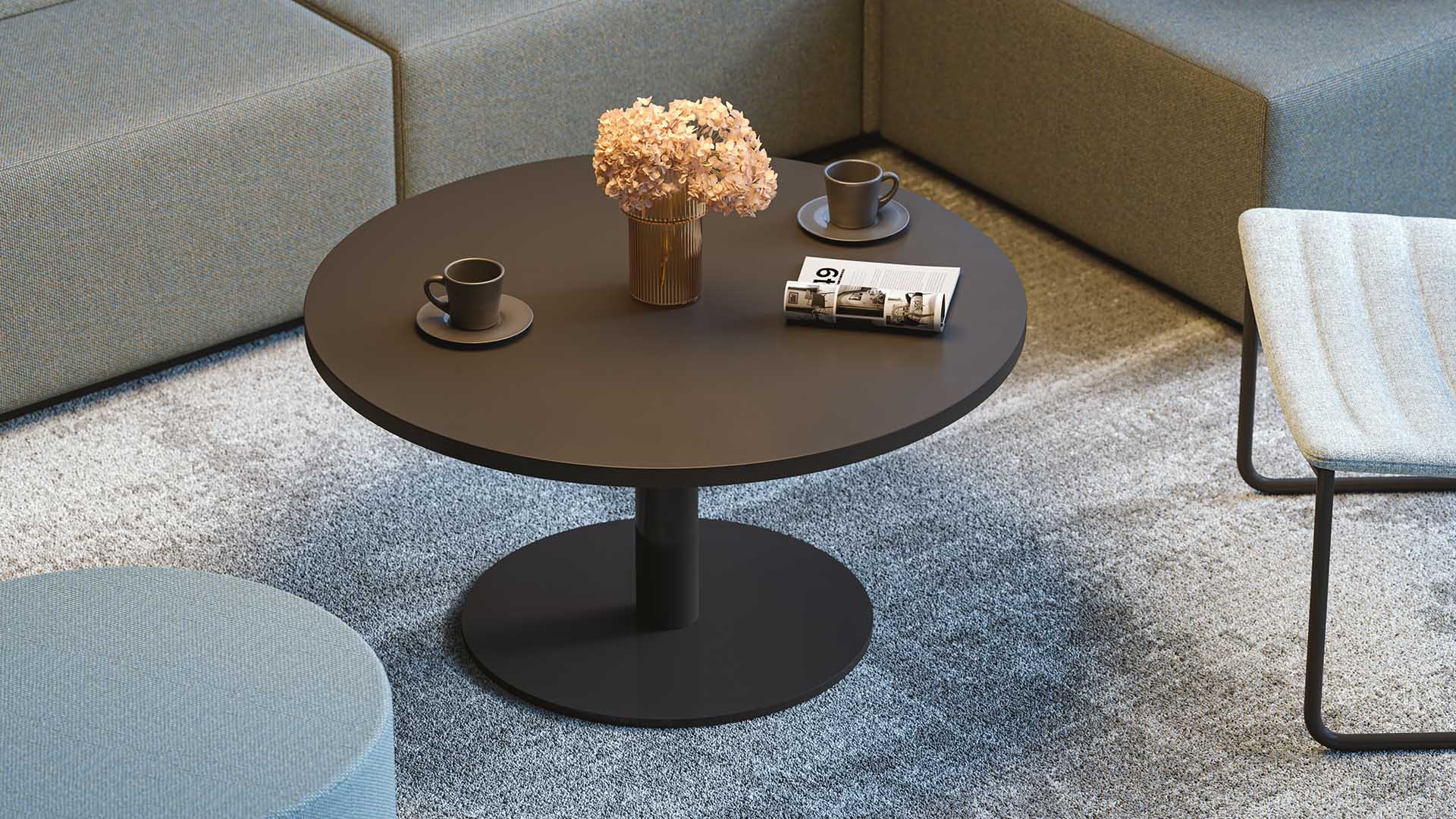 Cu dimensiuni de ø850mm și o înălțime de 440mm, măsuța FORUM oferă un spațiu suficient și funcțional, fiind ideală pentru utilizare atât în birouri, cât și în zone rezidențiale.