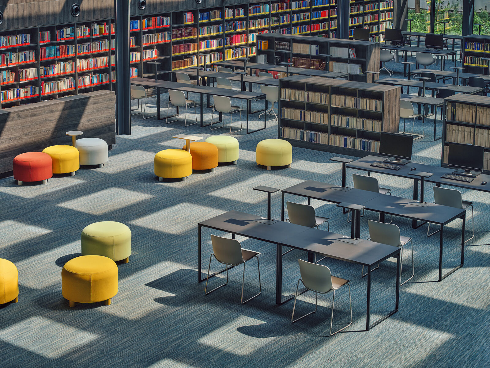 Natura modulară a sistemului Dots îl face ideal pentru spații comune și deschise, în special în birouri și centre comerciale.