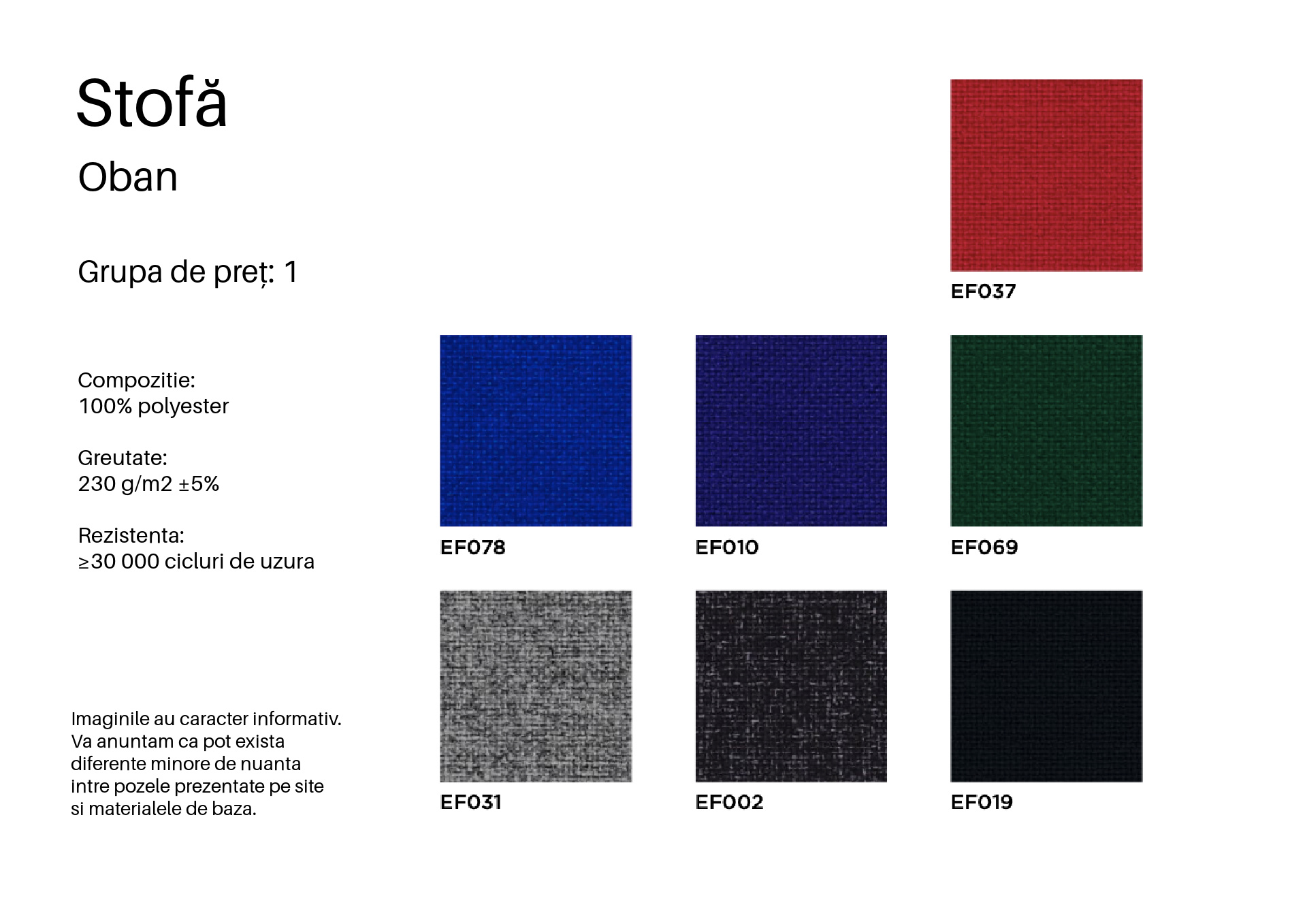 Structură metalică: Disponibilă în finisaje negre sau aluminate.
