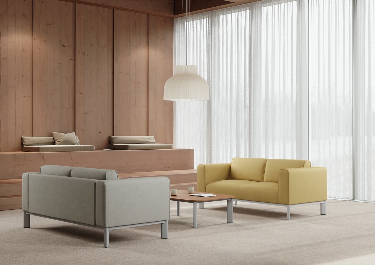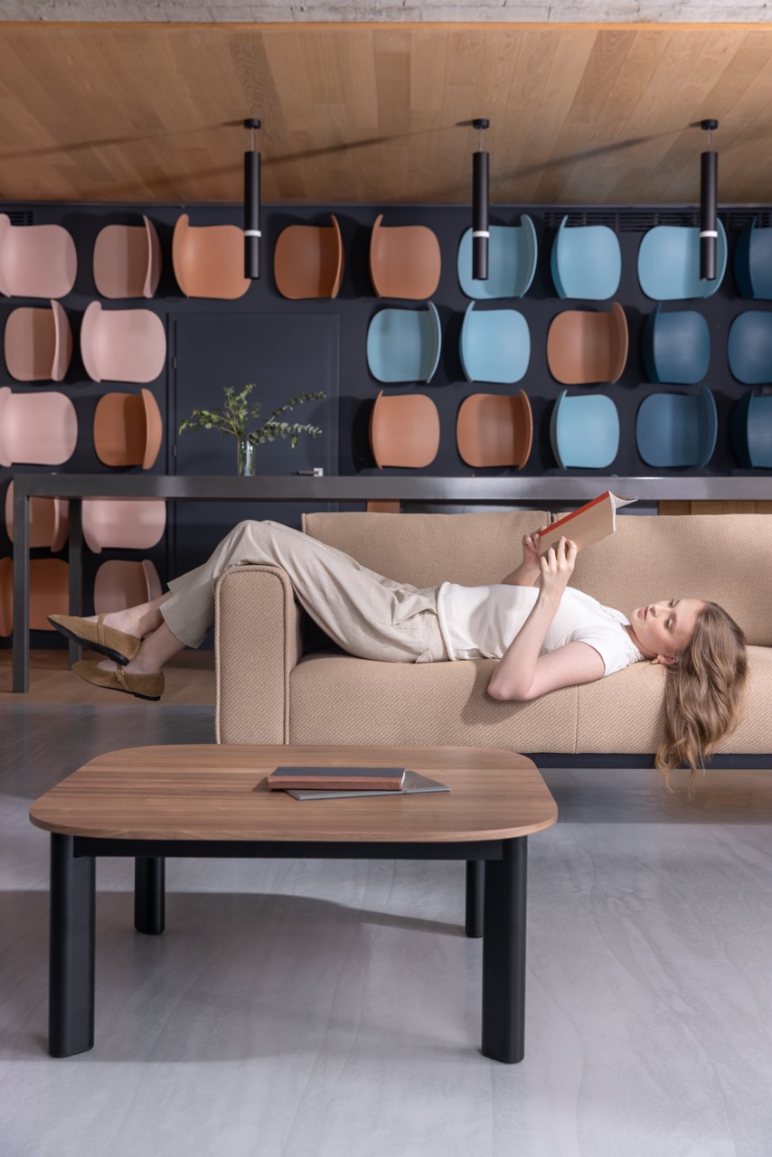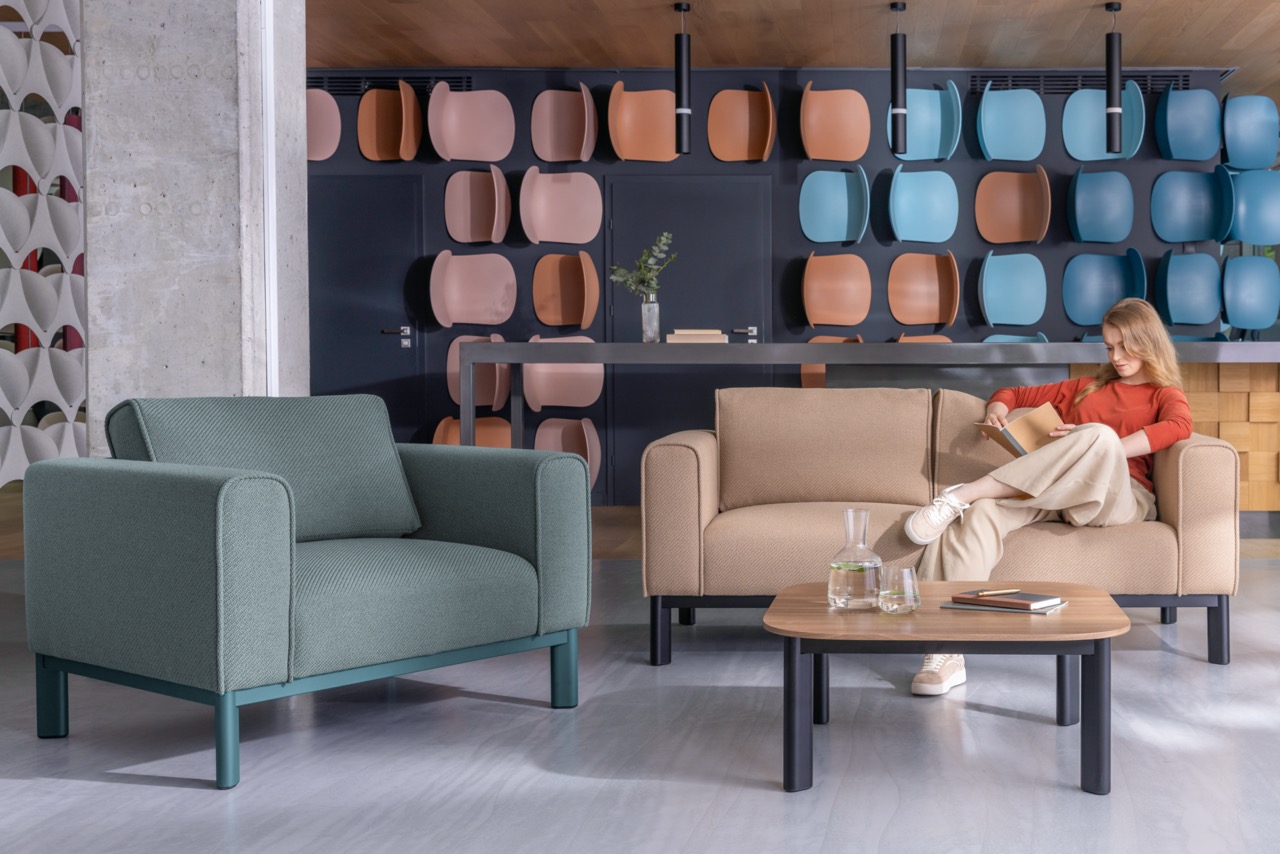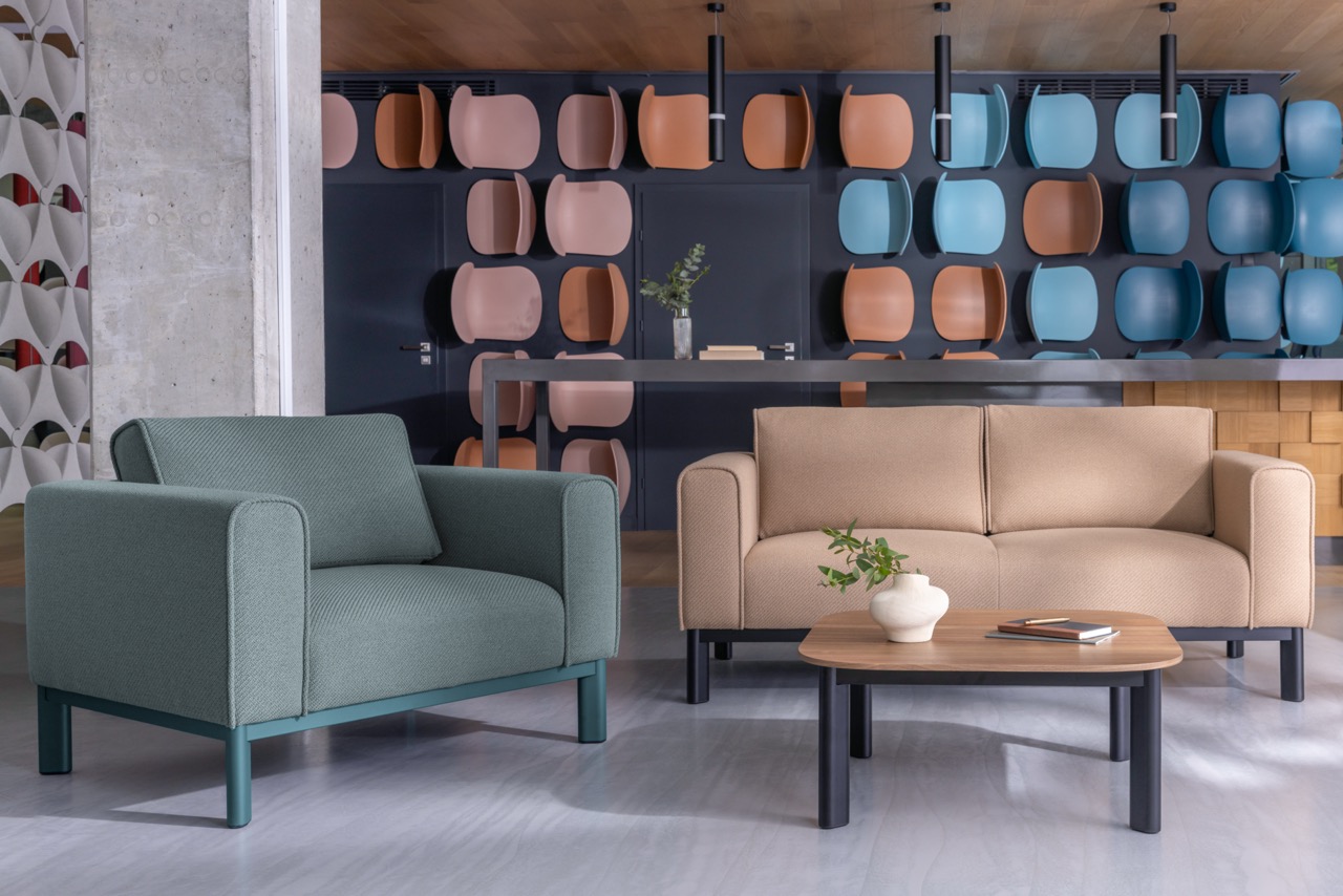 Colecția include un fotoliu, canapele cu două și trei locuri, precum și măsuțe de cafea în două dimensiuni – un echilibru perfect între căldura specifică designului rezidențial și durabilitatea necesară în amenajările contract.