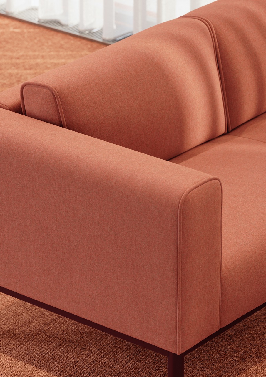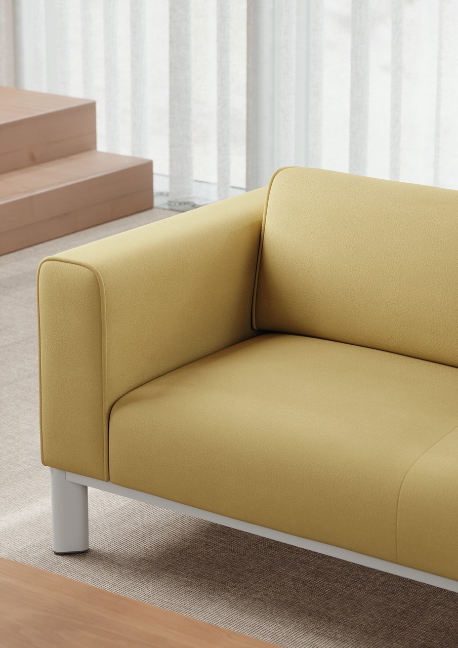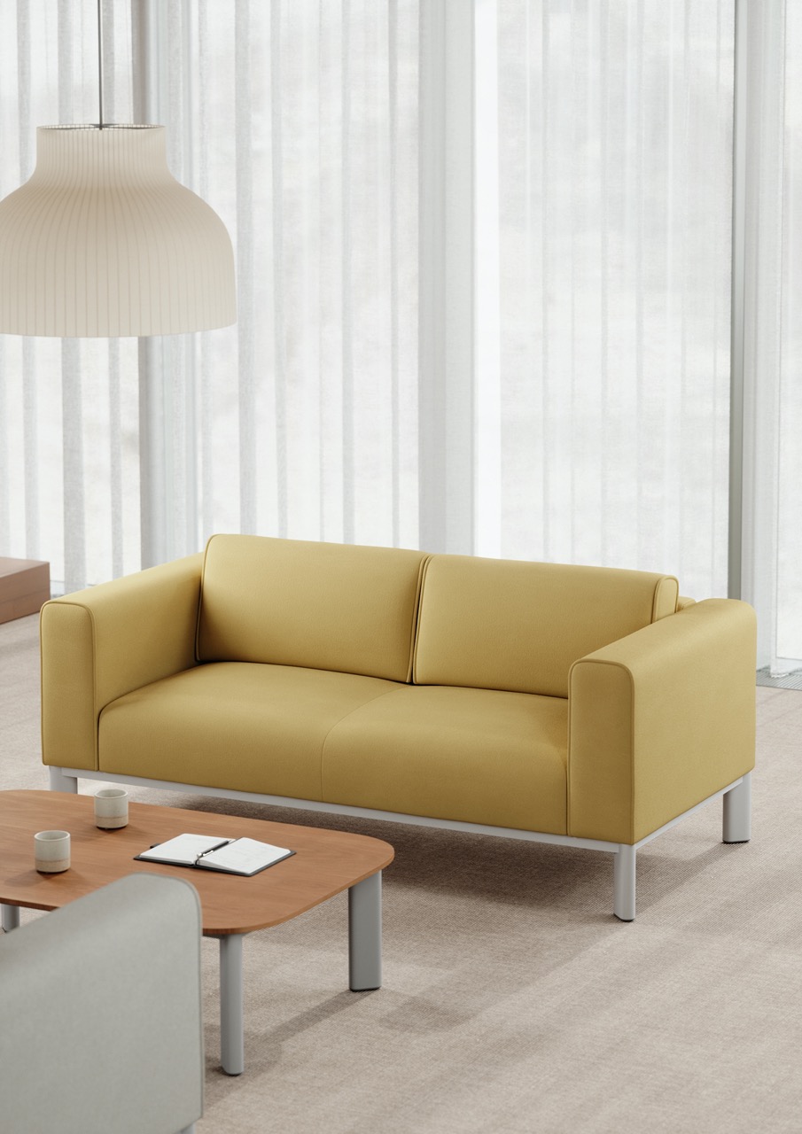Colecția include un fotoliu, canapele cu două și trei locuri, precum și măsuțe de cafea în două dimensiuni – un echilibru perfect între căldura specifică designului rezidențial și durabilitatea necesară în amenajările contract.