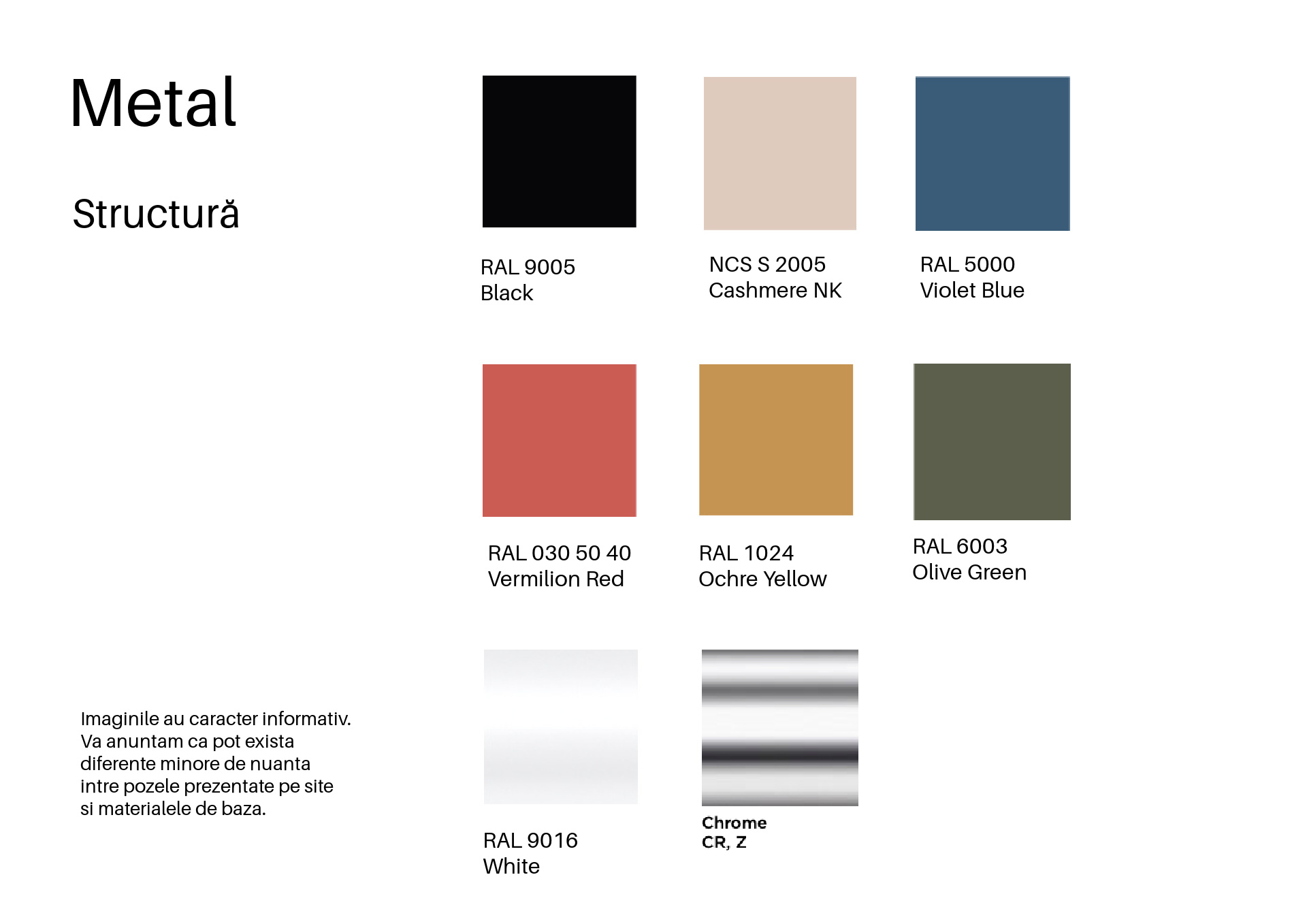 Cadrul robust: Picioarele din metal cromat asigură durabilitate și stabilitate.