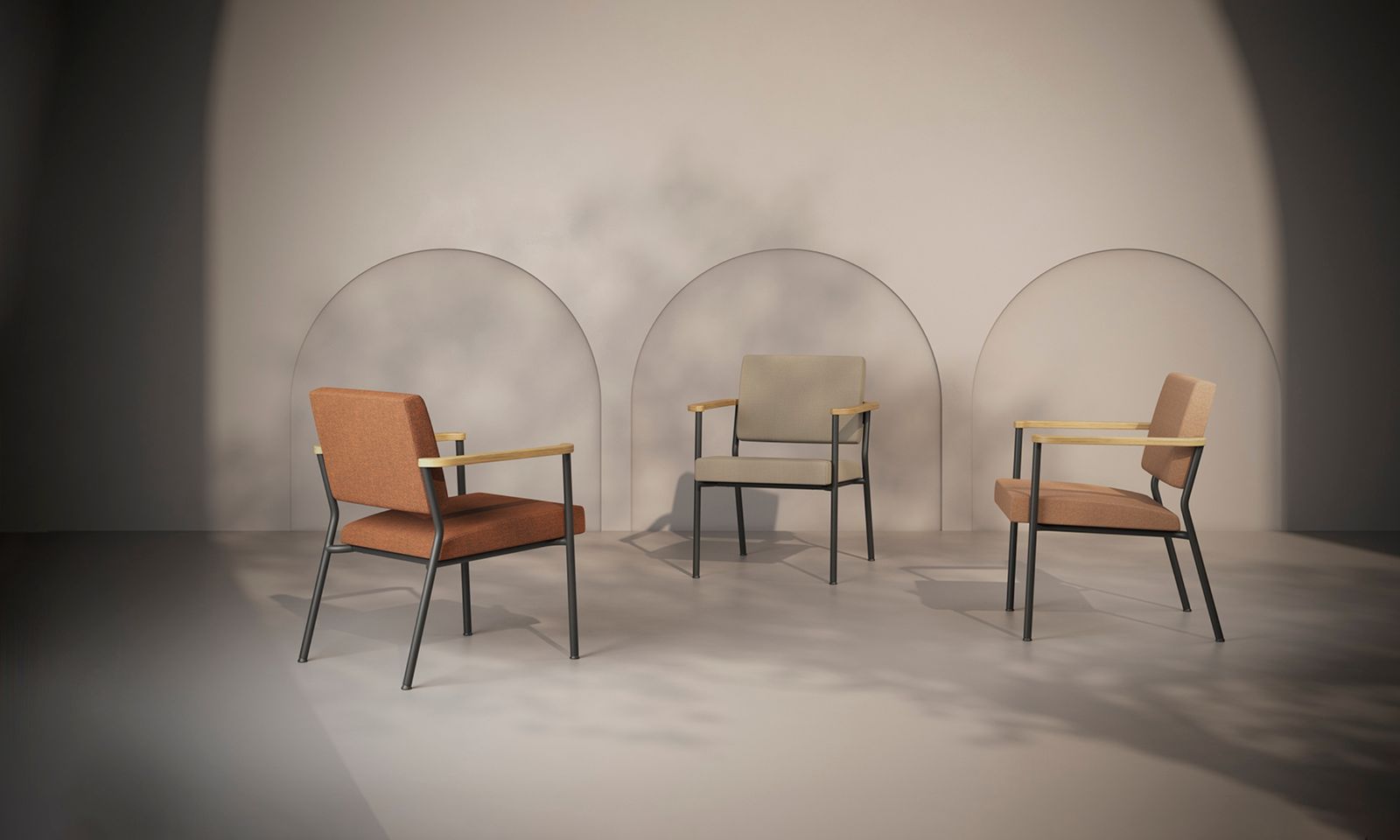 Brațe elegante: Brațele din structură metalică cu păduri de lemn contribuie la confortul utilizatorului.