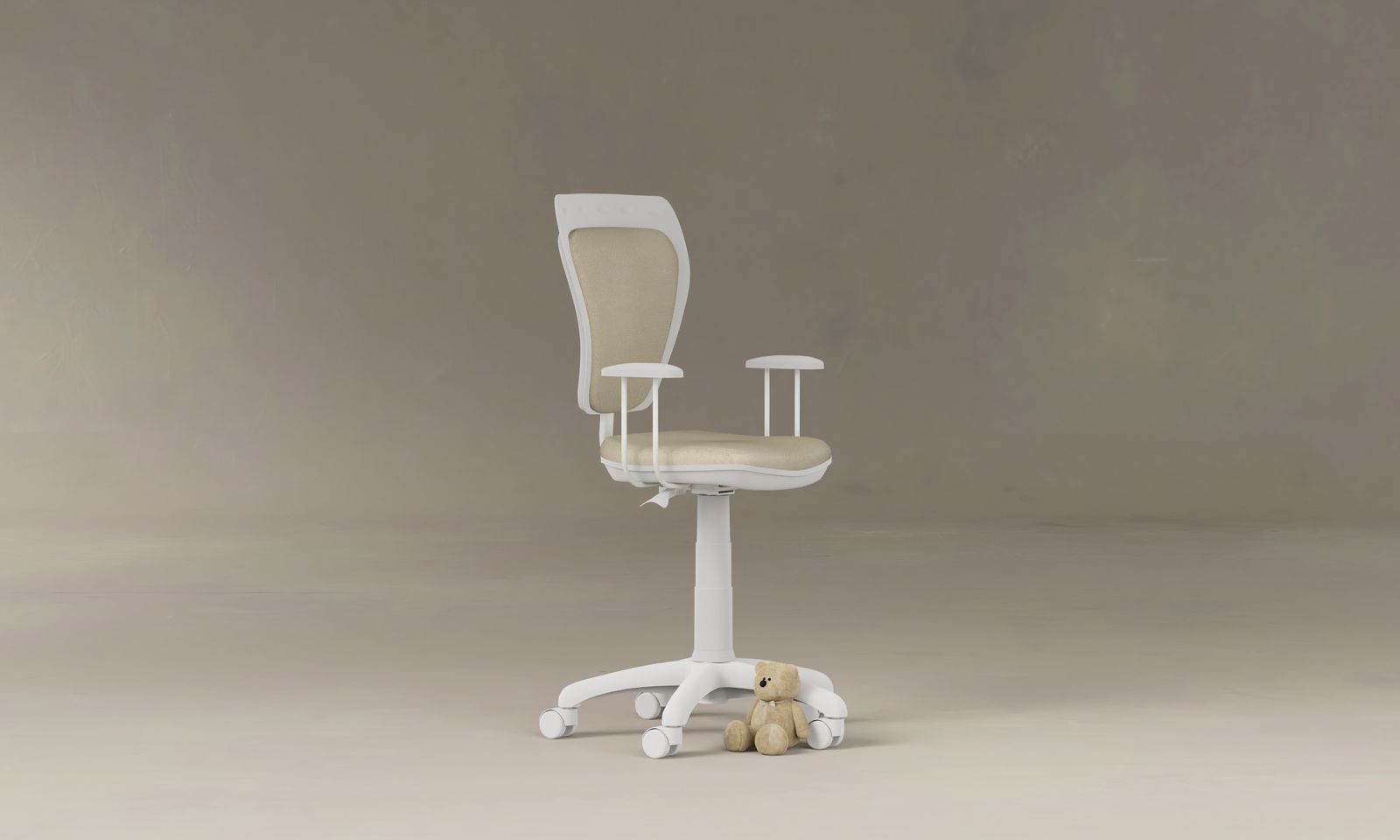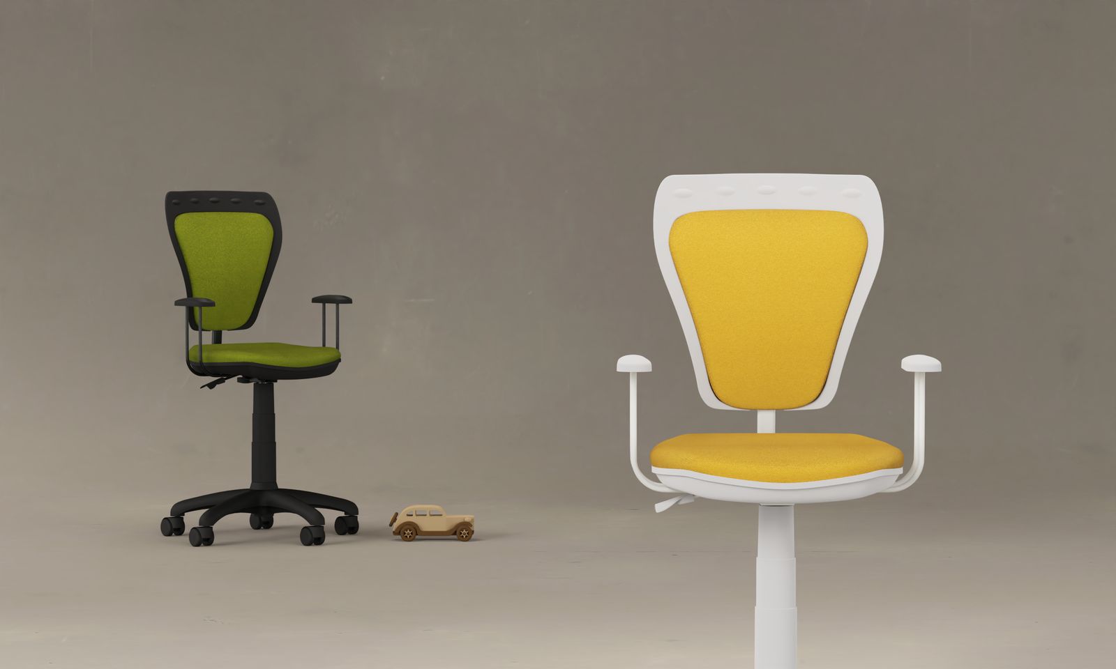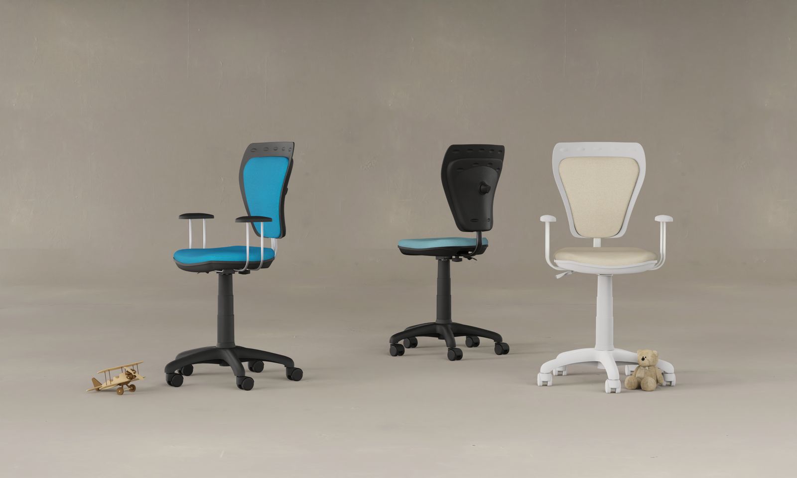 Ministyle este un scaun de birou ergonomic pentru copii, cu funcție rotativă, creat pentru a aduce confort și un plus de veselie în camera celor mici. Spătarul combină plasticul rezistent cu stofa moale, oferind susținere optimă, iar înălțimea se reglează cu ușurință prin coloana de gaz. În plus, scaunul dispune de reglaj al adâncimii spătarului, ușor de utilizat pentru adaptare la nevoile copilului.