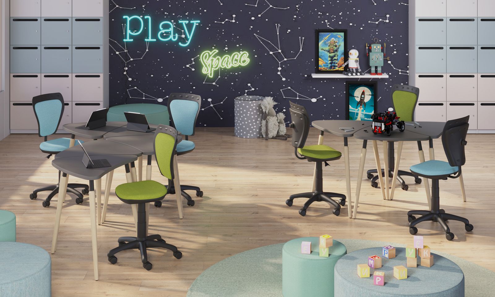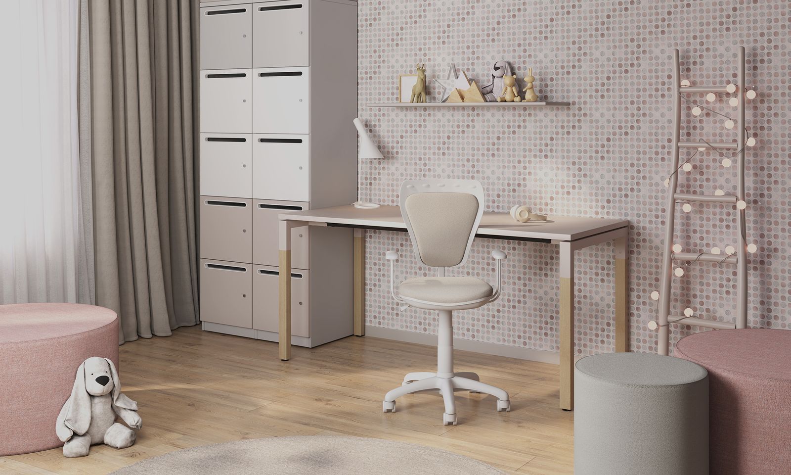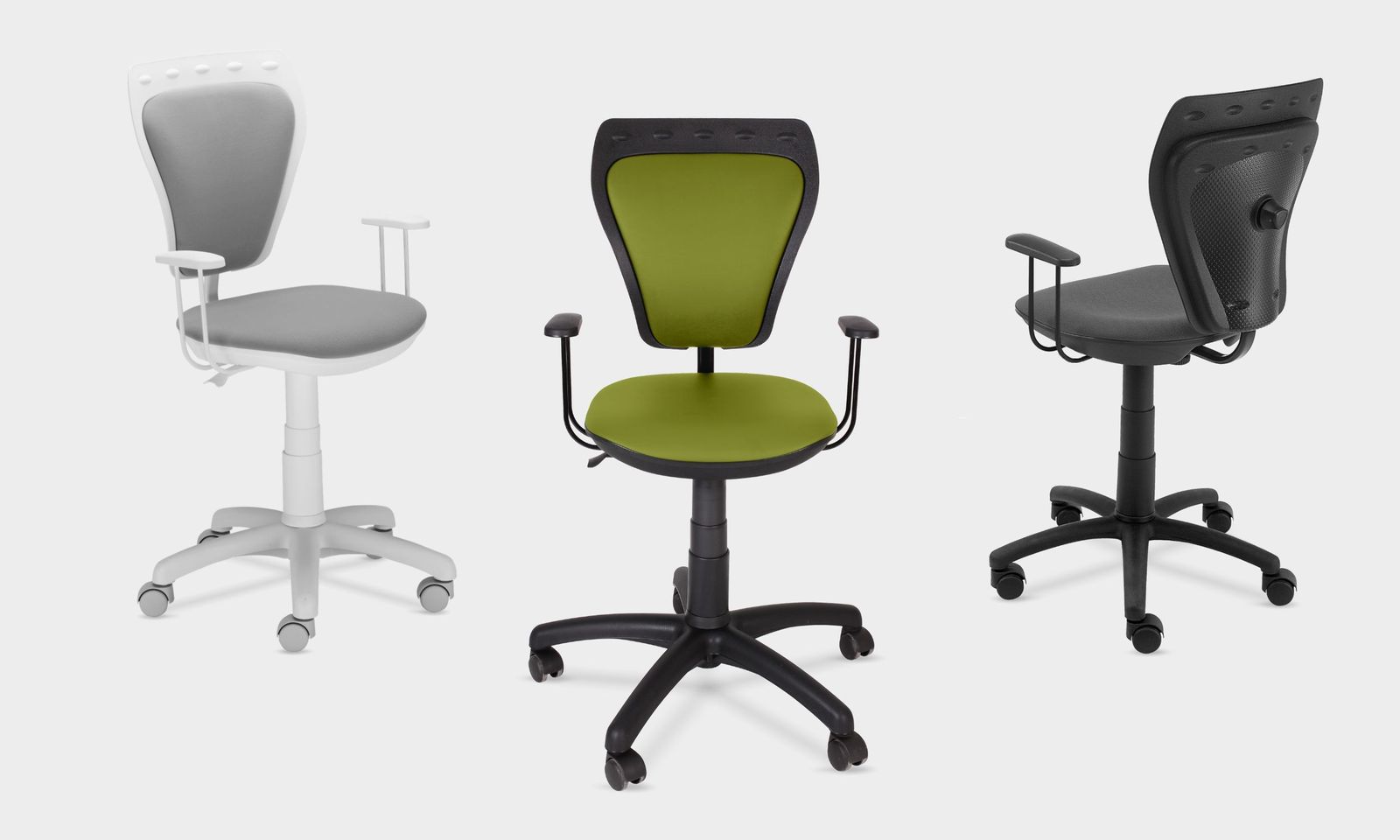 Ministyle este un scaun de birou ergonomic pentru copii, cu funcție rotativă, creat pentru a aduce confort și un plus de veselie în camera celor mici. Spătarul combină plasticul rezistent cu stofa moale, oferind susținere optimă, iar înălțimea se reglează cu ușurință prin coloana de gaz. În plus, scaunul dispune de reglaj al adâncimii spătarului, ușor de utilizat pentru adaptare la nevoile copilului.