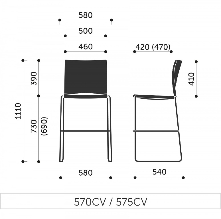 Dimensiuni scaun de Bar Ariz 570CV