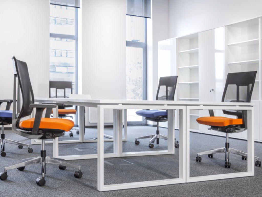 Șezutul este tapițat cu materiale de calitate superioară – piele ecologică, sau stofă și spătarul din plasă de tip mesh disponibile într-o gamă variată de culori. Baza în formă de stea este prevăzută cu role antialunecare și este disponibilă din plastic negru sau cu structură metalică cromată, oferind stabilitate și durabilitate în utilizare zilnică.
