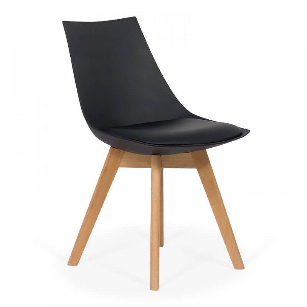 Șezutul este confortabil și bine proporționat, oferind o poziție plăcută la masă, iar tapițeria din piele ecologică adaugă un plus de rafinament și este ușor de întreținut. Modelul este disponibil în nuanțe de gri, negru sau alb, pentru a se potrivi perfect cu diverse stiluri de amenajare