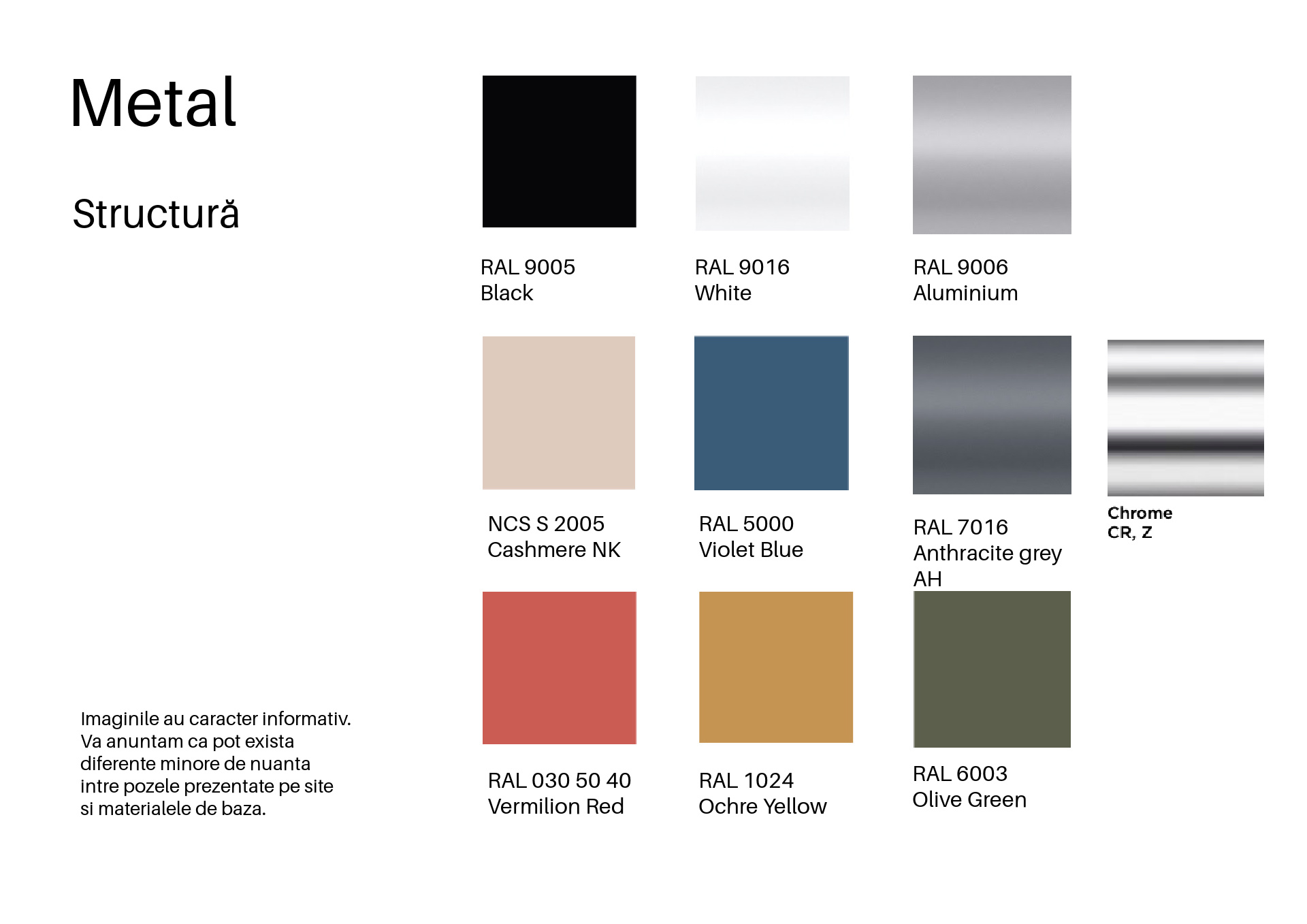 Structură metalică cu 4 picioare: realizată din metal aluminat sau cromat, oferind stabilitate și un aspect modern.