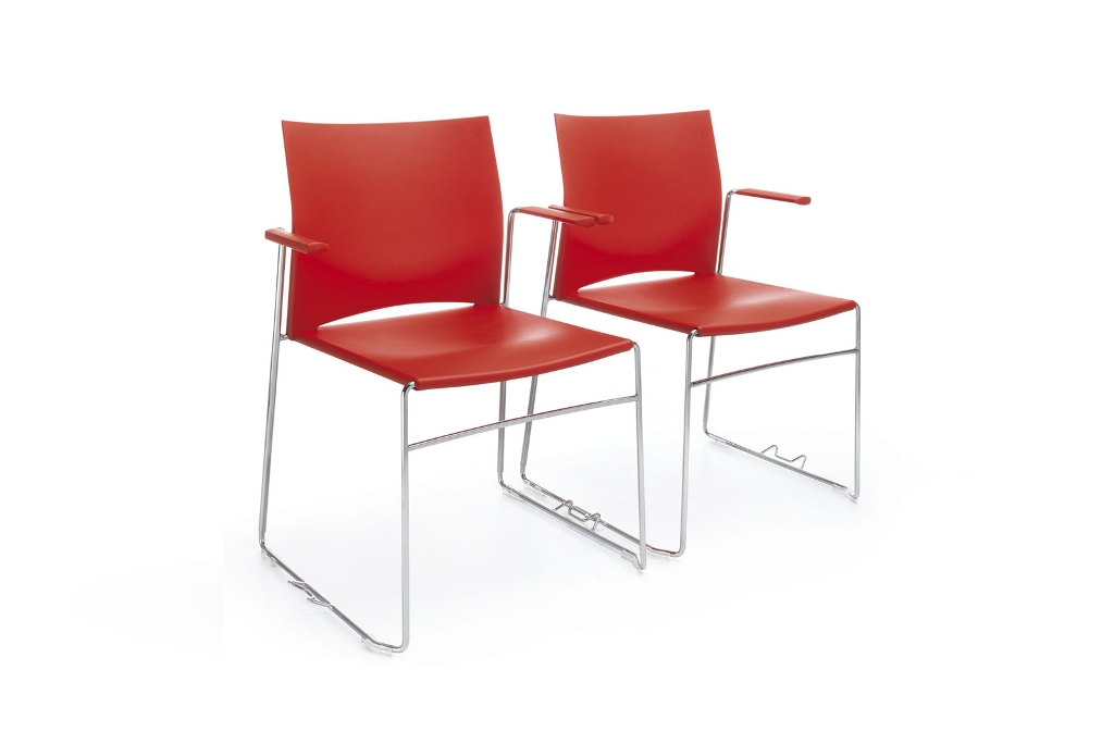 Opțional, scaunul poate fi echipat cu brațe fixe din structură metalică cu pad-uri dinpolipropilenă în culoarea spătarului. Scaunele pot fi stivuite până la 15 bucăți fără brațe sau până la 10 cu brațe, ceea ce permite economisirea spațiului și flexibilitate în organizarea sălilor.