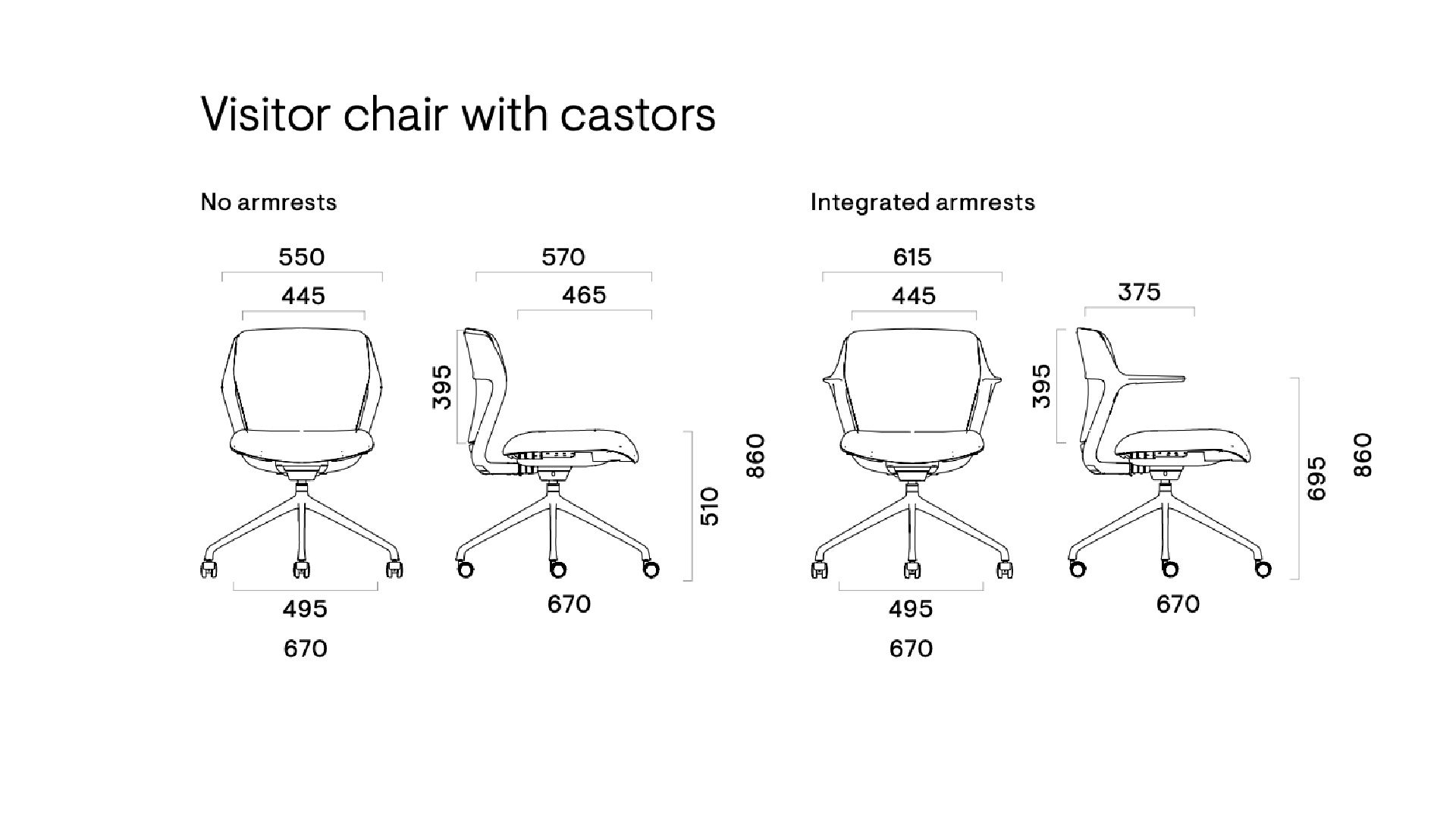 Baza piramidală, disponibilă cu tălpici sau role, conferă mobilitate și stabilitate, făcând scaunul ideal pentru spațiile de conferință, întâlniri sau zone colaborative.
