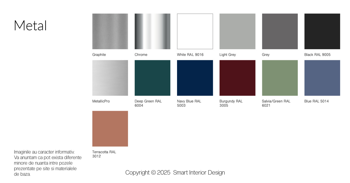 Structură metalică: Structura metalică a scaunului este realizată dintr-un cadru durabil, conceput pentru a asigura stabilitate și rezistență în utilizarea de zi cu zi.