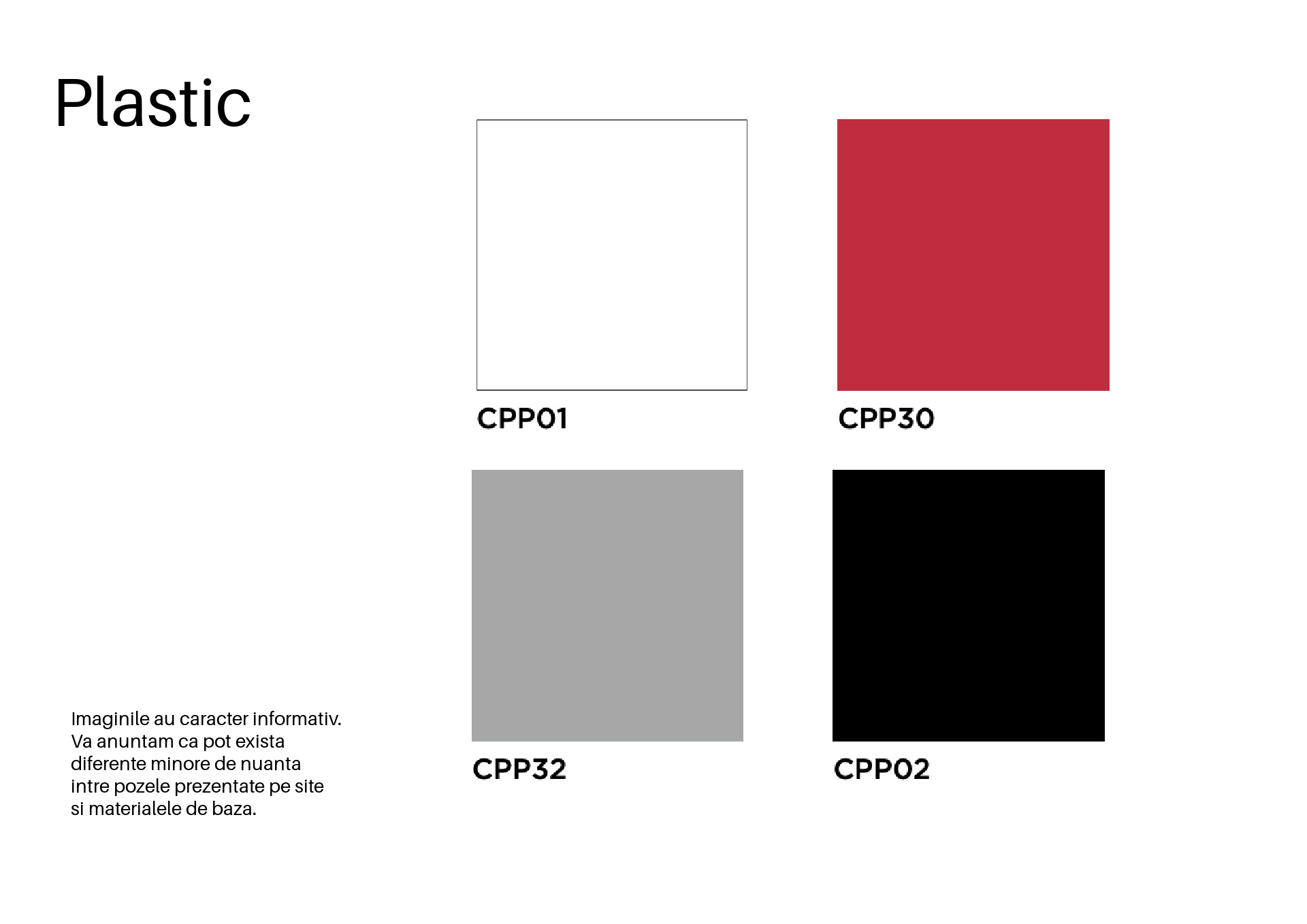 Șezutul și spătarul din plastic sunt disponibile într-o gamă variată de culori, permițând adaptarea ușoară la diferite scheme de design interior.