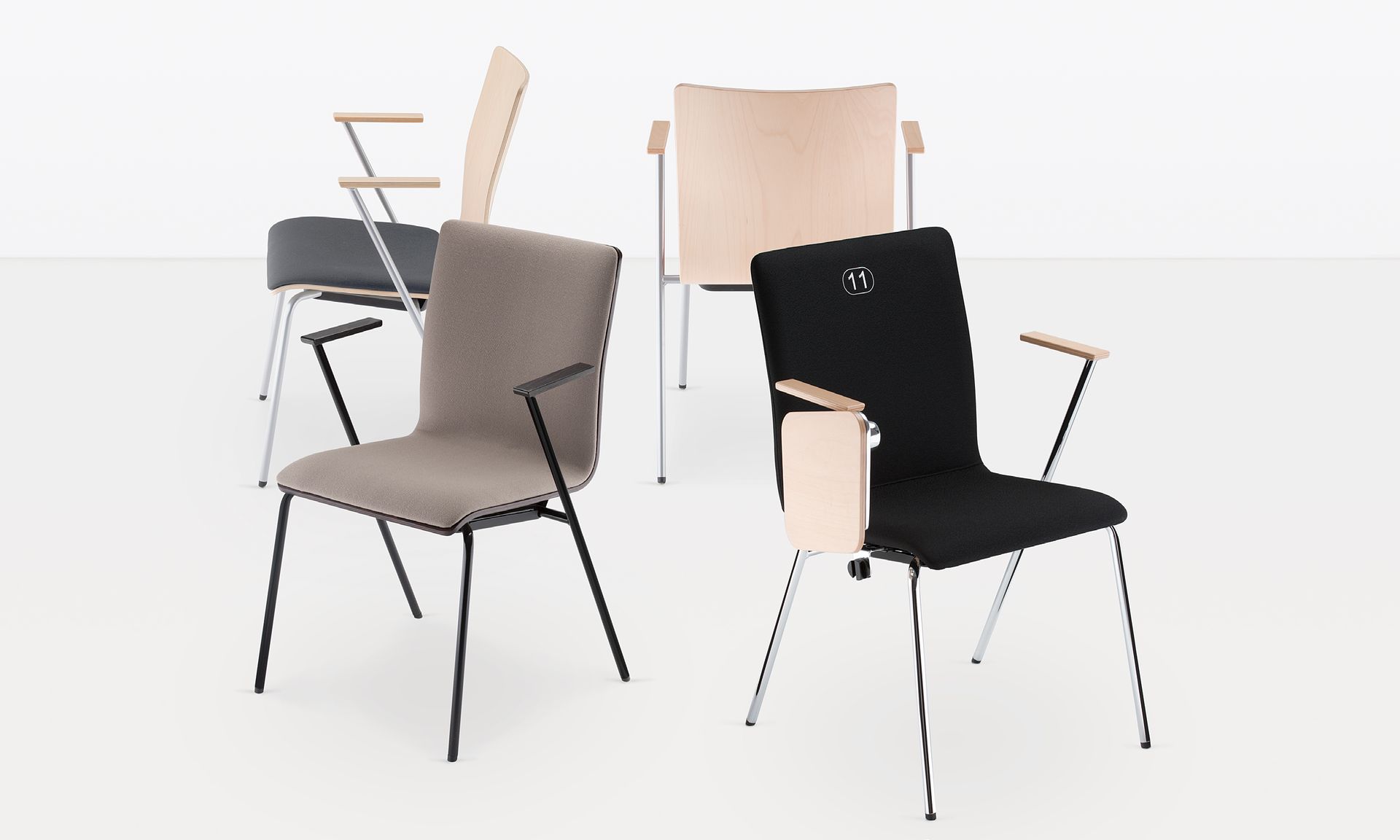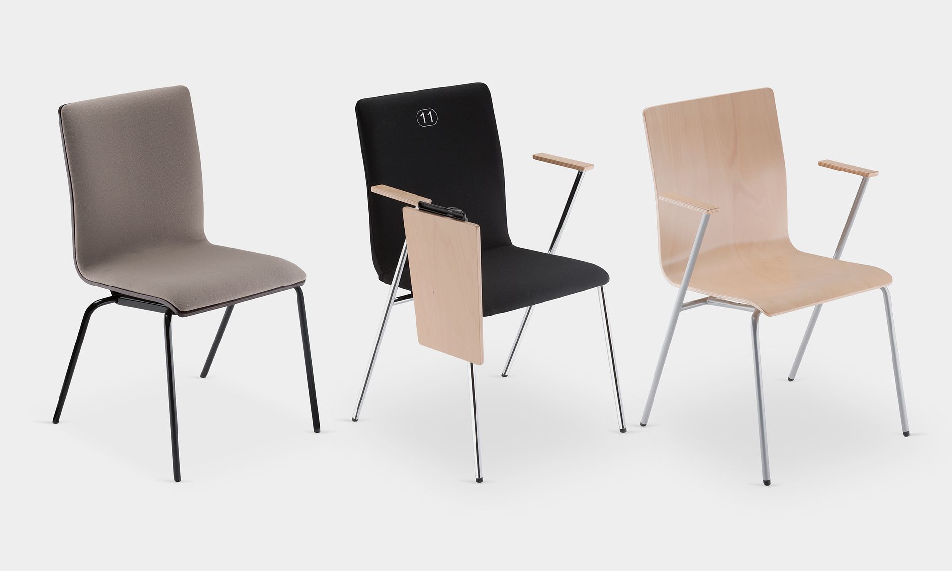 Scaunele Fen 4L Arm A Plus pot fi suprapuse în număr de patru bucăți pentru economisirea spațiului.