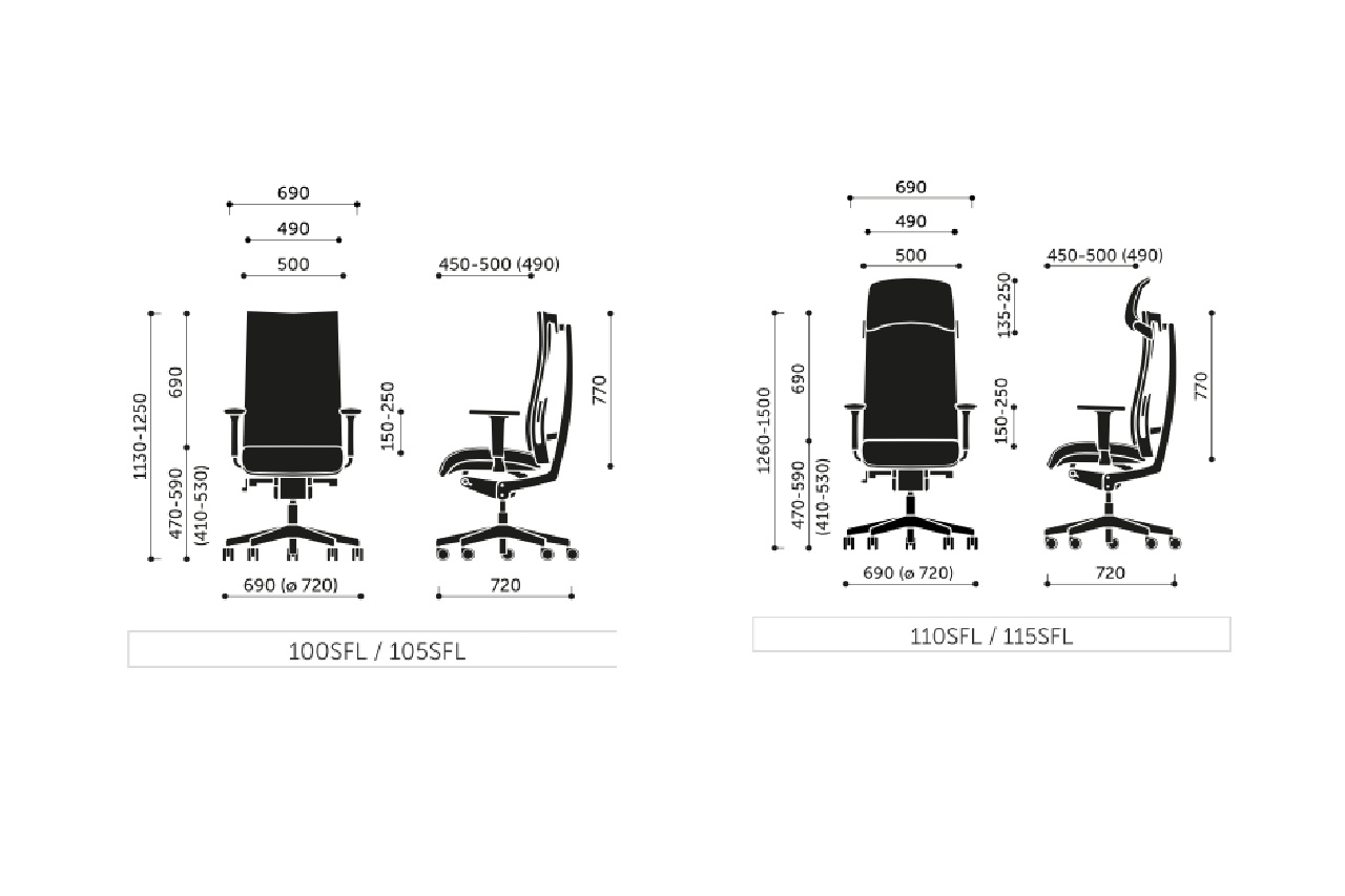 • Mecanism Synchro SFL – Permite reglarea înălțimii șezutului și sincronizarea mișcării spătar/șezut, cu posibilitatea de ajustare a rezistenței spătarului în funcție de greutatea persoanei care stă. Include funcții suplimentare: șezut glisant și înclinare șezut/spătar. Are 6 poziții de blocare.