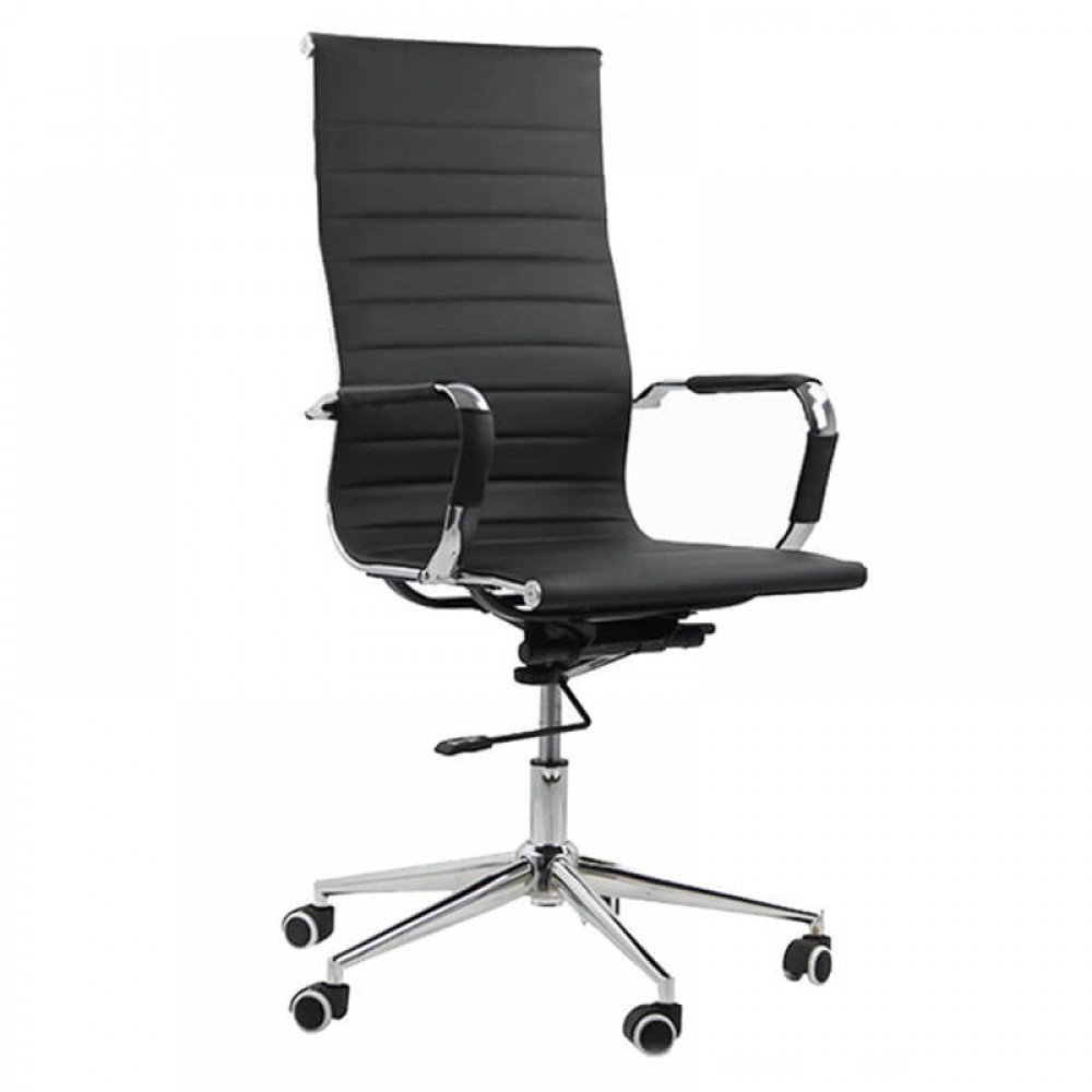 Designul său sofisticat este evidențiat de cadrul metalic cromat și de tapițeria din piele ecologică, care oferă un aspect profesional și este ușor de întreținut. Liniile curate și finisajele atent realizate permit integrarea scaunului în diverse tipuri de amenajări office.