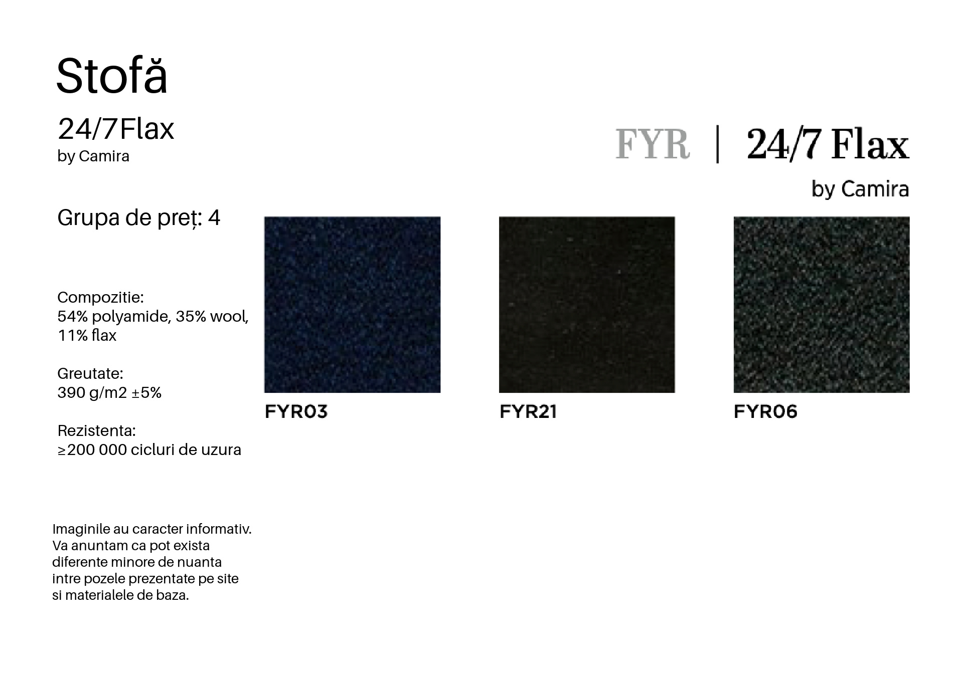 Tapițerie de înaltă calitate: Disponibilă în stofă într-o varietate mare de culori, rezistentă la 200.000 de cicluri de uzură.
