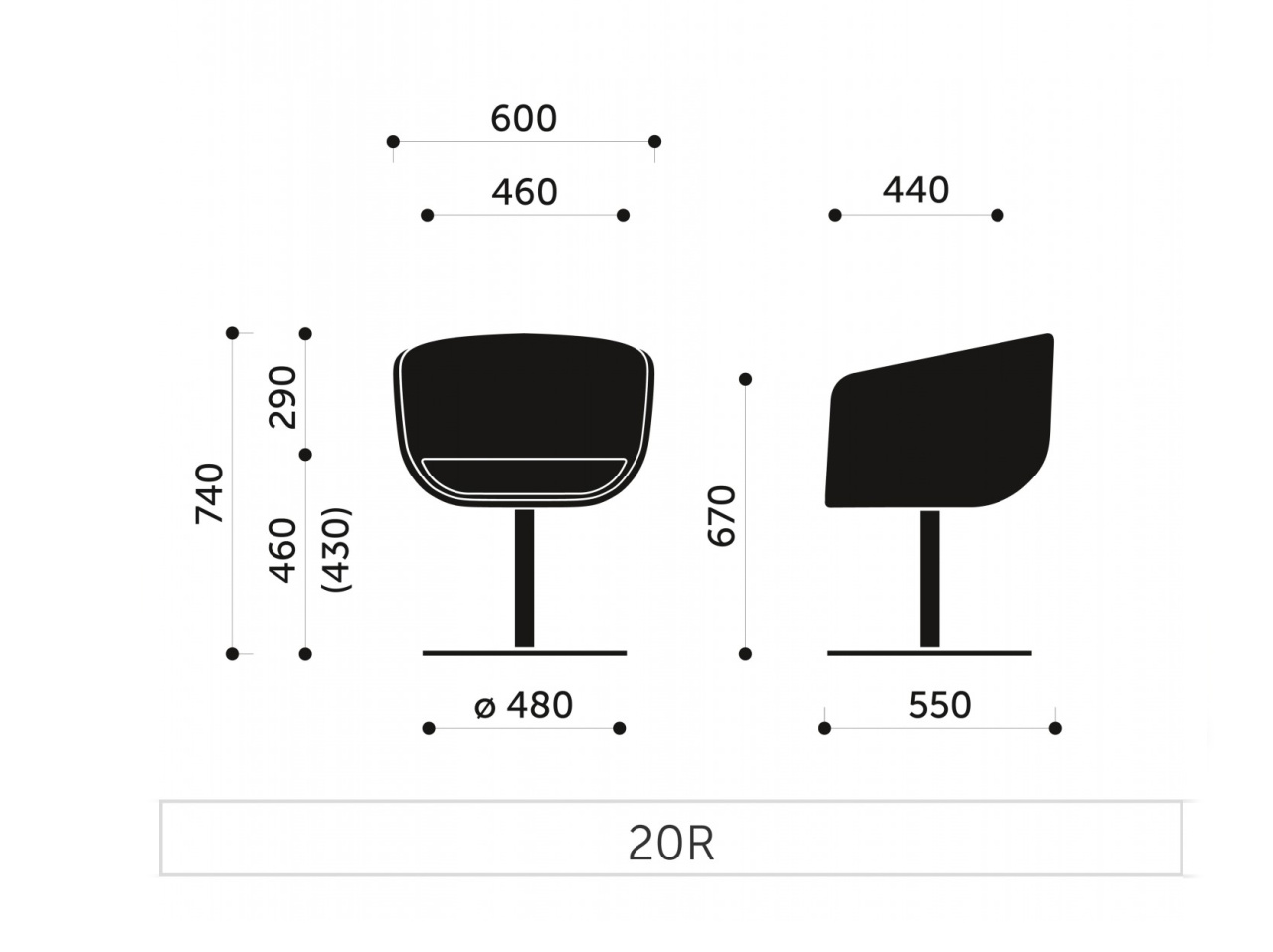 Versiunea 20R, cu funcție de rotație, aduce un plus de dinamism și funcționalitate, păstrând totodată liniile clasice care definesc colecția. Fotoliul este suficient de elegant pentru interioare moderne, dar și extrem de versatil, integrându-se natural în livinguri, birouri de acasă, lobby-uri sau săli de așteptare.