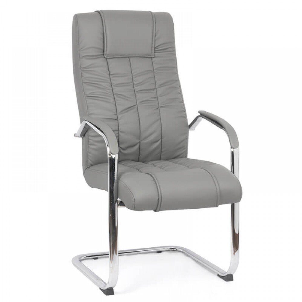 Scaunul de vizitatori OFF 8115 este dotat cu un spatar captusit, care asigura sustinere corecta si confort chiar si in timpul sedintelor mai lungi. Structura tip sanie din metal cromat ofera stabilitate excelenta si rezistenta in timp, iar bratele cromate completeaza aspectul modern si profesional.